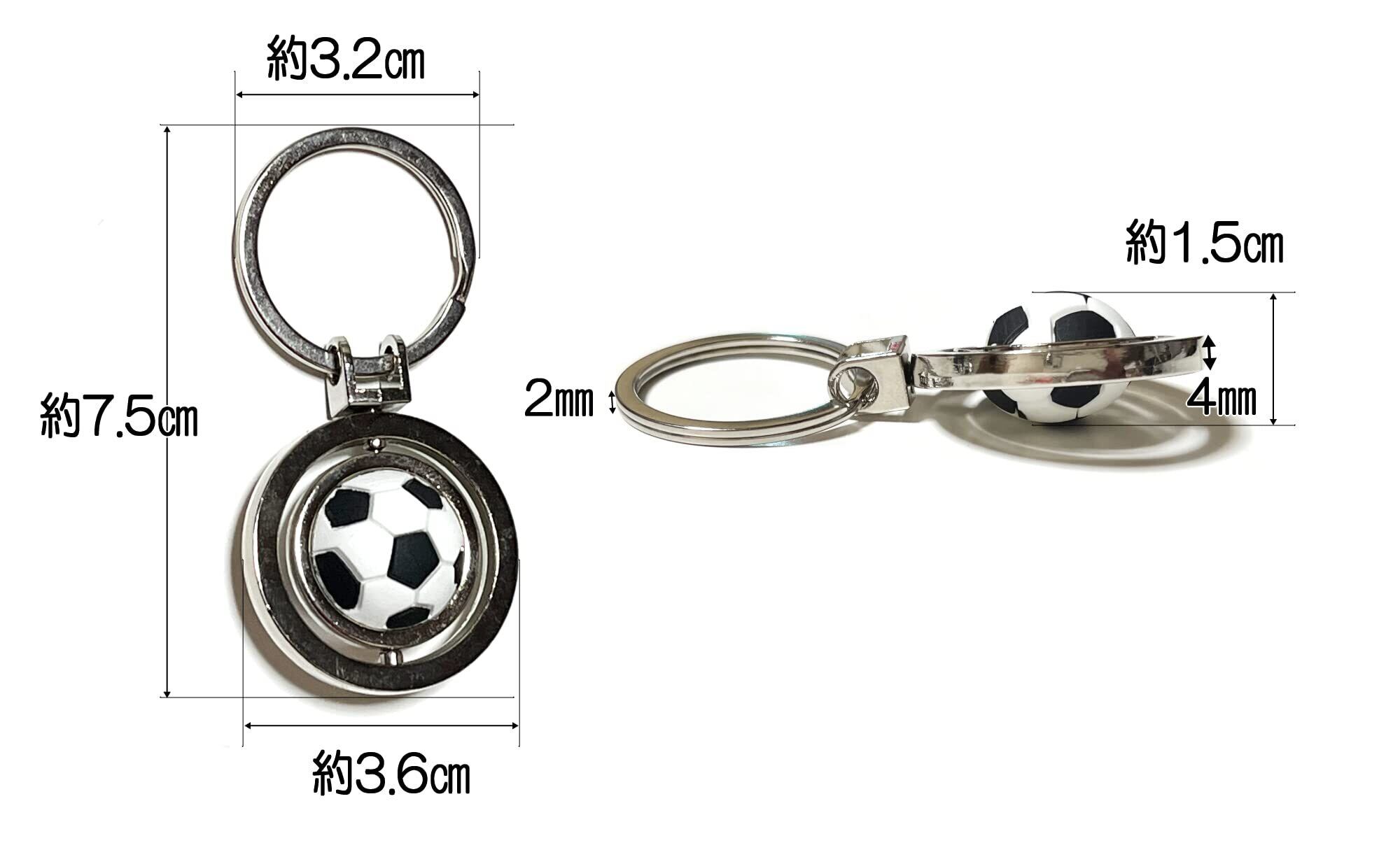 3D回転サッカーボールキーホルダー:長さ7.5㎝ 幅3.6㎝ 厚み1.5㎝ 重さ28.7g