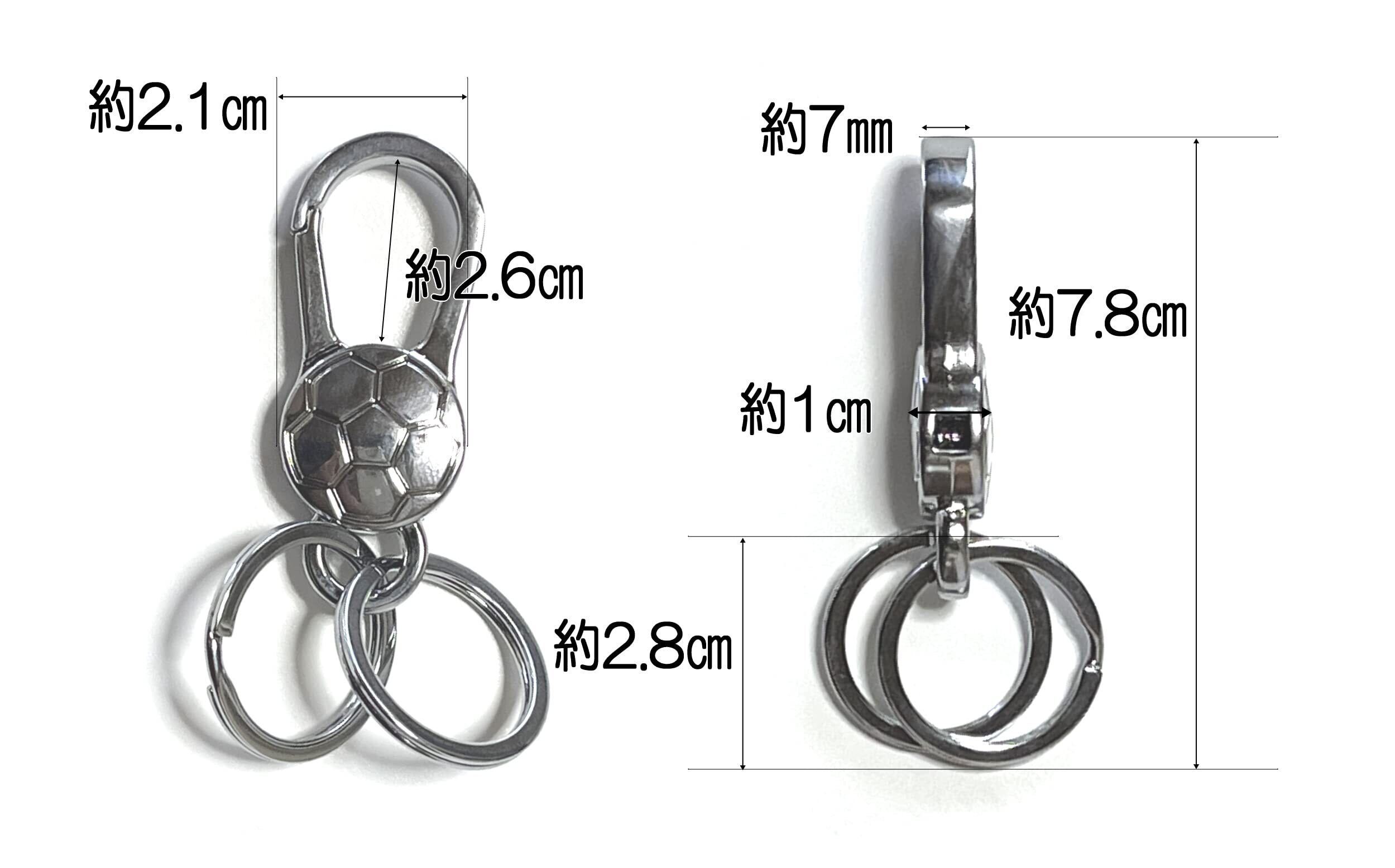 キーホルダー サッカー Wキーリング カラビナ フック & 3D 回転 サッカーボール 合金製 シルバー 2個セット