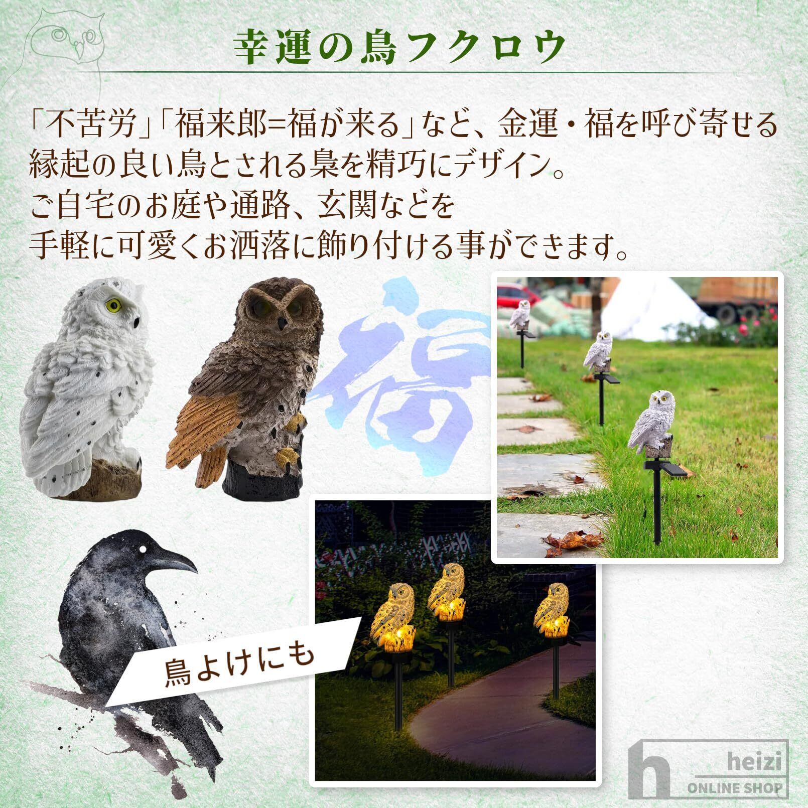 heizi フクロウ ソーラーライト 屋外 ガーデンライト 防水 自動点灯 ガーデニング 庭 置物 (ホワイト2個セット)