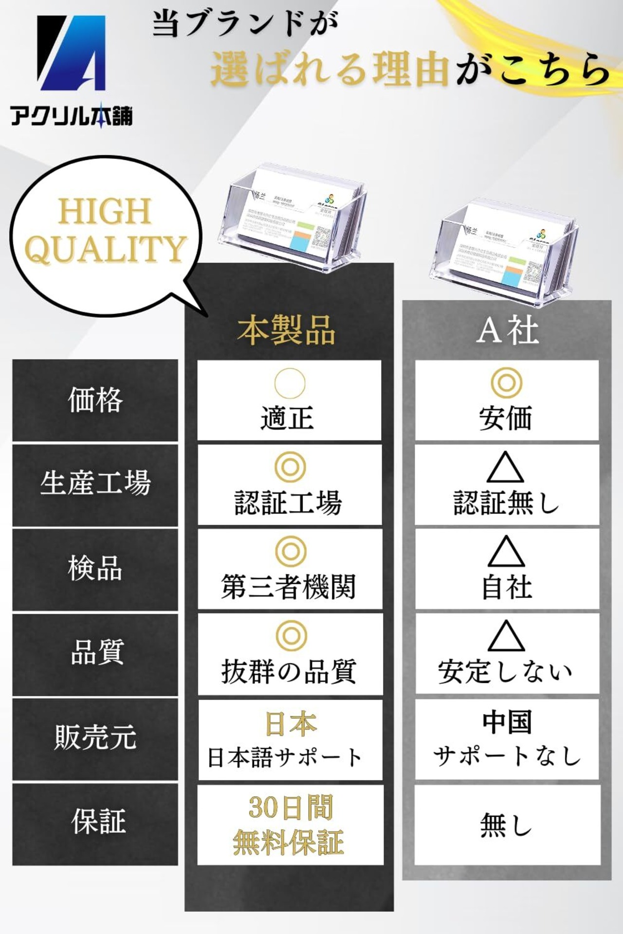 【 安心の日本ブランド 】商品は当店オリジナルブランド「アクリル本舗」のブランドパッケージに入れてお届けいたします。当ブランドの商品はご購入後30日間は返品・返金にて対応させていただきます。