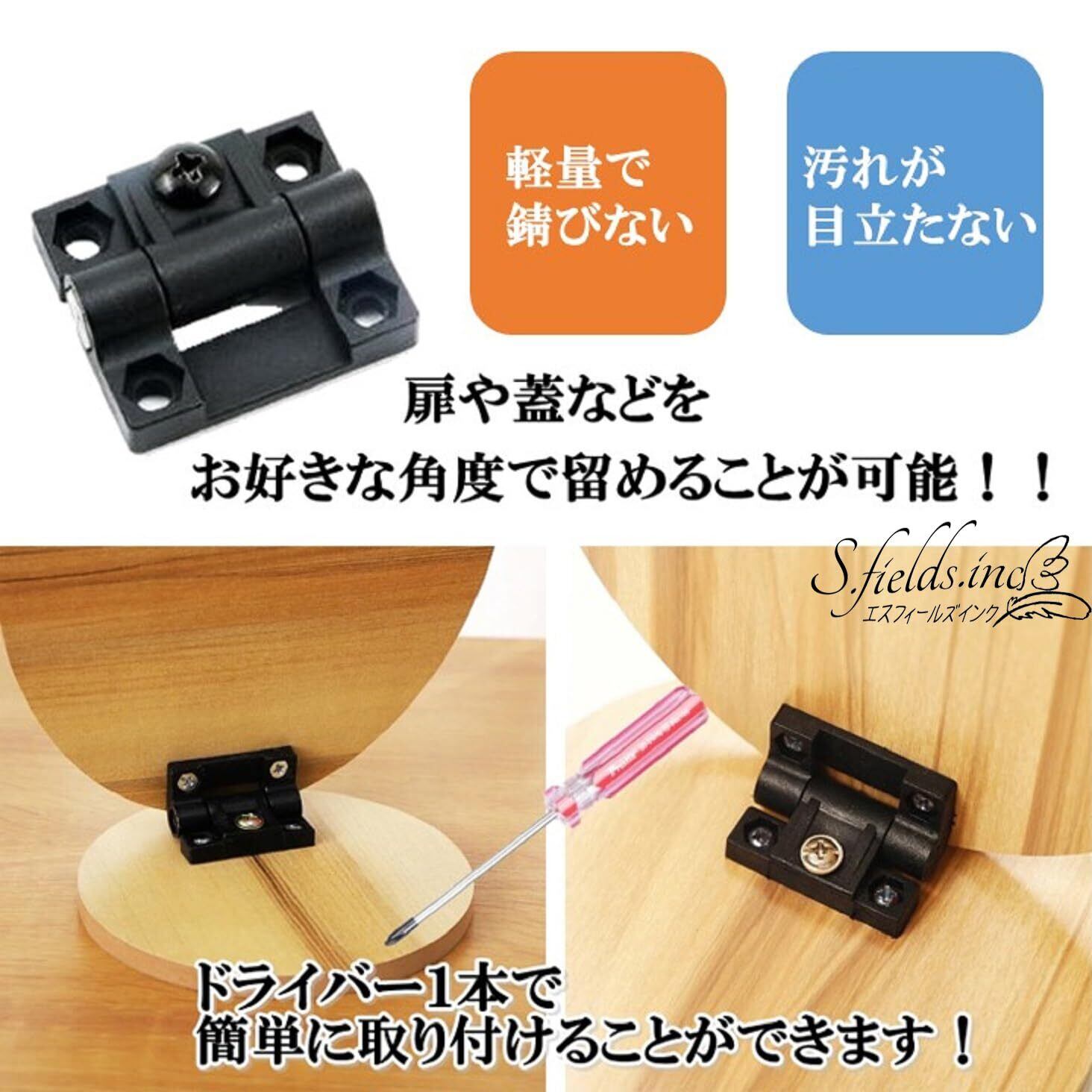 S.fields.inc フラットトルクヒンジ ストップ蝶番 10個セット ミニ プラスチック 黒