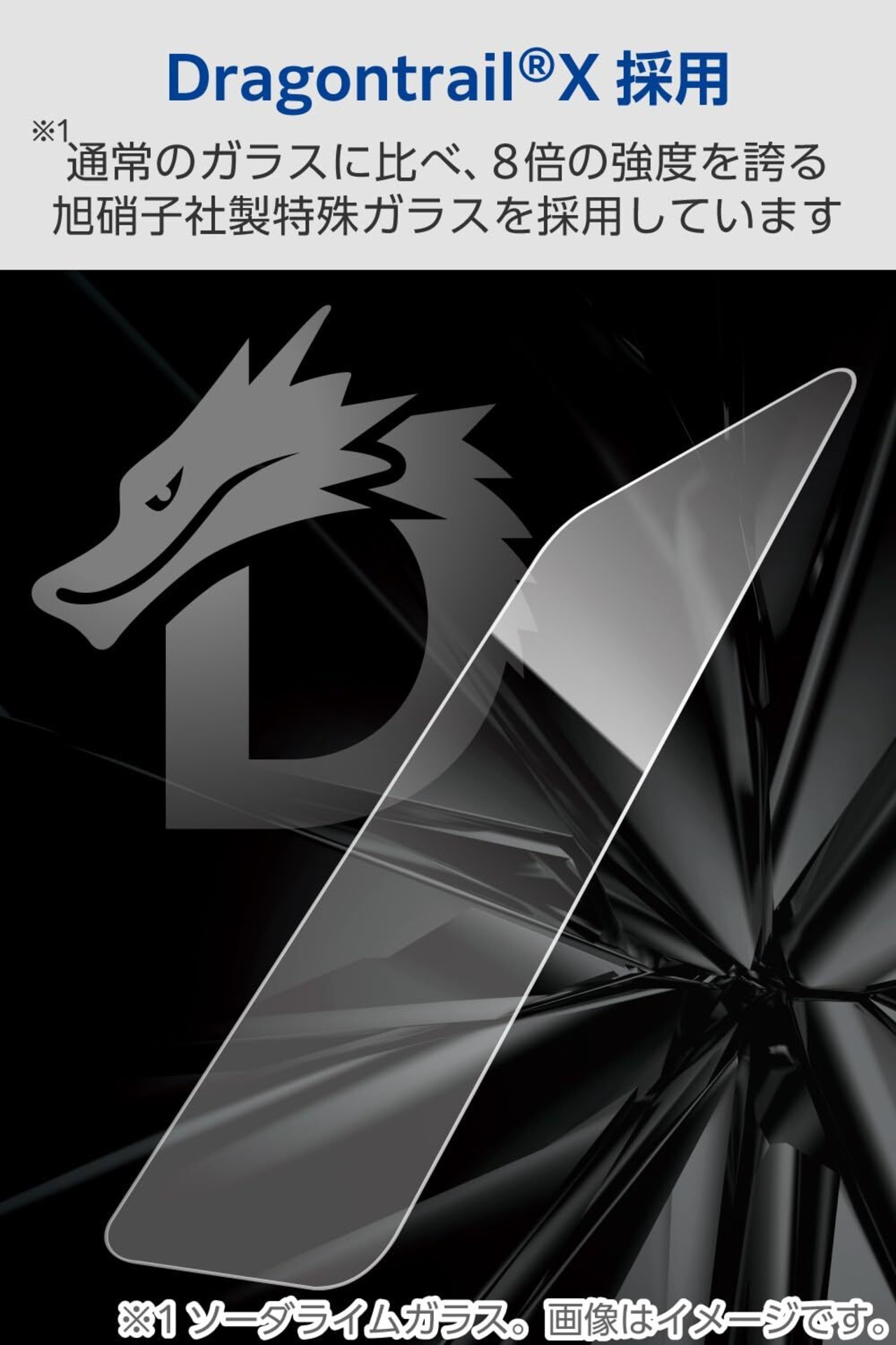 ■通常のガラス(ソーダライムガラス)に比べ、8倍の強度を誇る“Dragontrail(R)X”を採用しています。