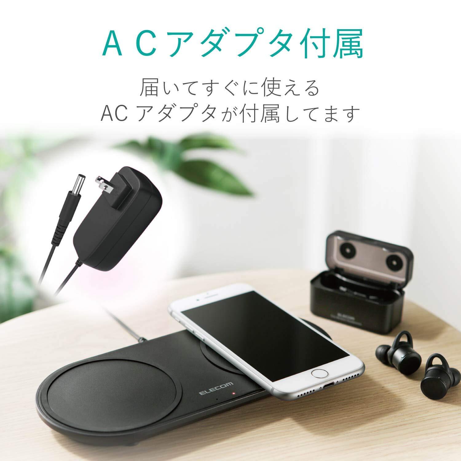 ■スマートフォンや他のQi対応機器を置くだけで、2台同時に充電できるQi規格対応ワイヤレス充電器です。 ■WPC(ワイヤレスパワーコンソーシアム)が策定したワイヤレス給電の国際標準規格「Qi(チー)」に準拠した正規認証品です。 ■※エレコムはワイヤレスパワーコンソーシアムの正規会員企業です。 ■専用のACアダプタが付属し、購入後すぐに使用可能です。 ■スマートフォン2台それぞれを5Wで充電可能です。 ■※充電対応機種は対応表をご確認ください。