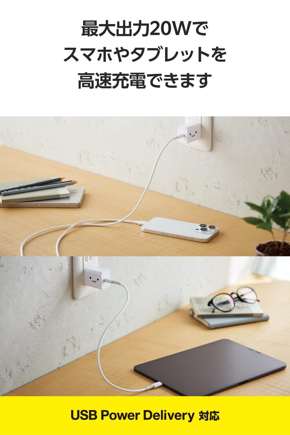 エレコム 充電器 Type-C USB-C 20W USB PD対応 1ポート PSE認証品 GaN採用 折りたたみ式プラグ しろちゃん 【 iPhone16 15 等対応】 EC-AC6820WF | yankees