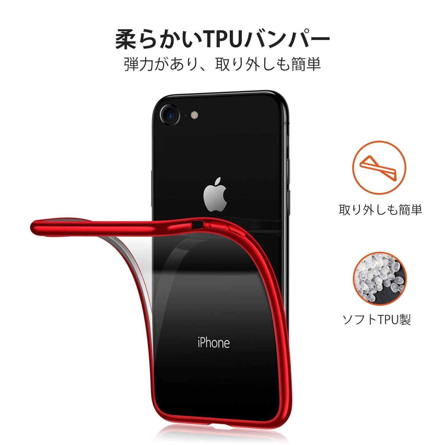 iPhone SE3 ケース iPhone SE ケース 第2世代 iPhone8 ケース iPhone7 ケース2022年新型 クリア 透明 tpu シリコン メッキ加工 スリム 薄型 4.7インチ スマホケース 耐衝撃 黄変防止 一体型 人気 携帯カバー レッド