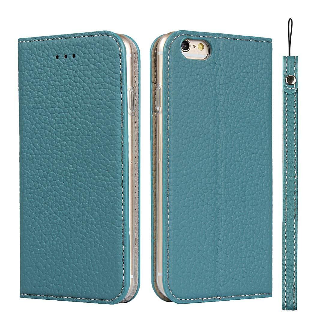 Eastwave for iPhone 6S Plus / 6 Plusケース for iPhone 6Plus 手帳型ケース 6SPlus 財布型 カバー 本革 柔らかい 本皮 高質 スプラットホール付き スプラット同梱 内蔵マグネットカード収納 横置きスタンド機能 -ライトブルー