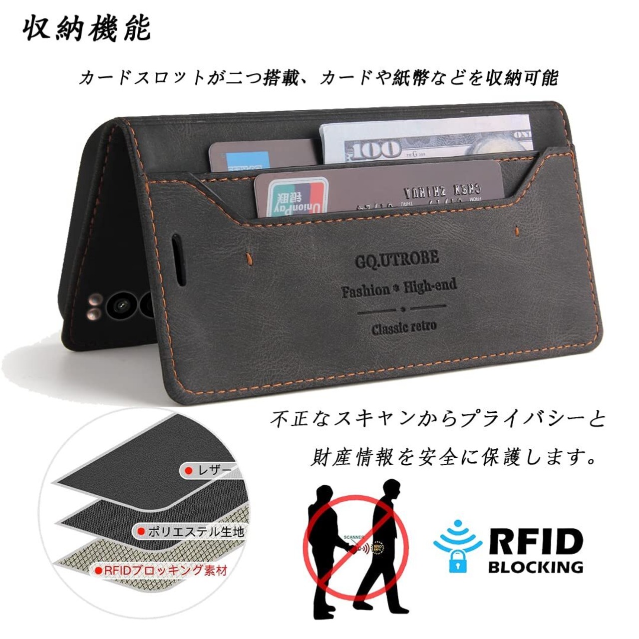 UnivoColors Sony Xperia 5 III (SO-53B / SOG05) 手帳型ケース 高級合皮 スタンド機能 カード収納 マグネット式 TPUソフトカバー 全面保護 カメラ保護 衝撃吸収 RFIDブロッキング おしゃれ カバー(ブラック)