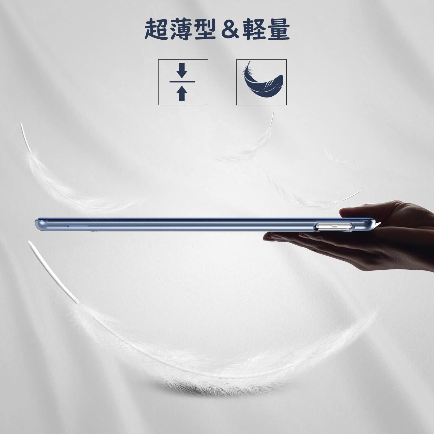 「上質な素材採用」 フロントカバーは柔らかくて上質なPUレザーを採用し、バックケースはカバーはハードなPC素材で作り上げられ、日常使用中のスクラッチ、ほこり、汚れなどからタブレットを守る同時に、iPad本来の美しさを遮ることなく引き立てます。