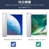 「対応機種」 iPad Air 2019(10.5インチ、第3世代)(モデル:A2152、A2123、A2153、A2154)とiPad Pro 10.5インチ2017 (モデル:A1709、A1701、A1852)にカスタム設計しており、他のモデルには適用しません。ご購入の前にお手元のタブレットの機種を予めご確認ください。