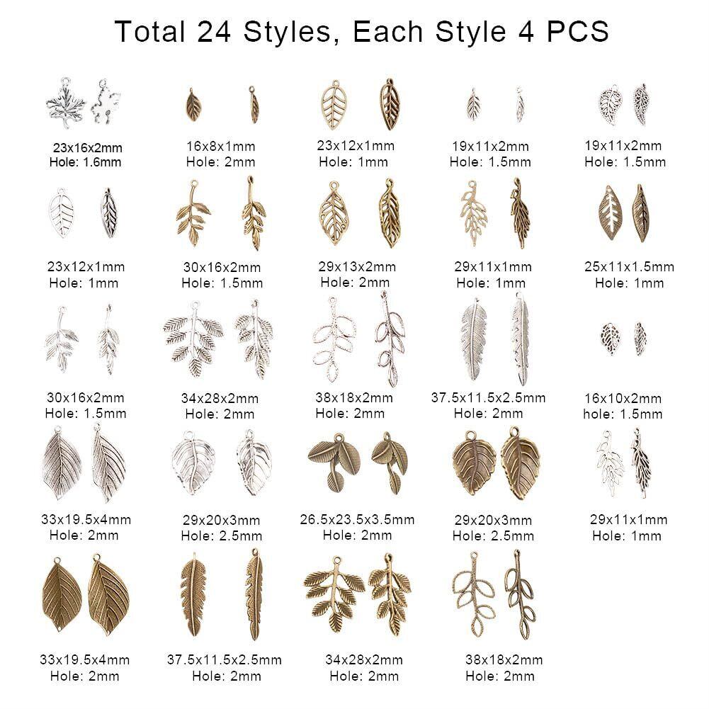 [PH PandaHall] 約96個/箱 14種 合金 リーフチャーム ペンダント アクセサリートップ カン付き 金古美 チベット メタル 葉っぱチャーム ジュエリー用 アクセサリーキット 手作り素材 材料 混合色