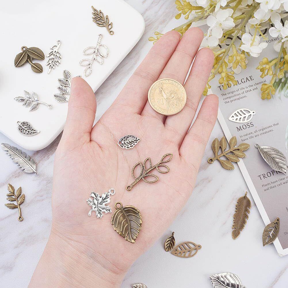 ✿本製品は合金材質を採用しており、チベット風のペンダントチャームです。約14種の異なる葉っぱデザインがあり、コットン糸やナイロン糸やレザーコードなどと繋がれば、可愛くおしゃれなブレスレット・ネックレス・ピアスなどの製作ができ上ります。