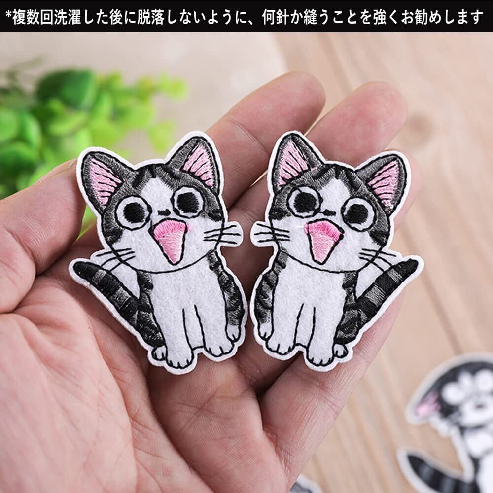 刺繍猫アイロンワッペン接着アップリケ パッチDIY アクセサリー、猫装飾パッチ補修、ジャケット、帽子、バックパック、ジーンズ用のネコ匹かわいいアップリケ パッチ (D- 5pcs チー)