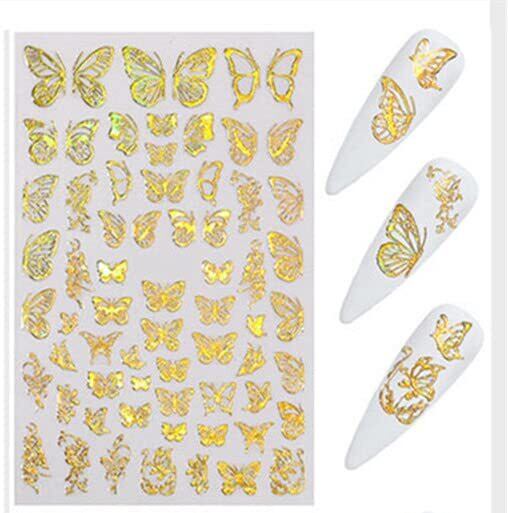 4枚 蝶々 3D レーザー ゴールド シルバー ネイルステッカー シール ネイルデコ セルフネイル ネイルアート