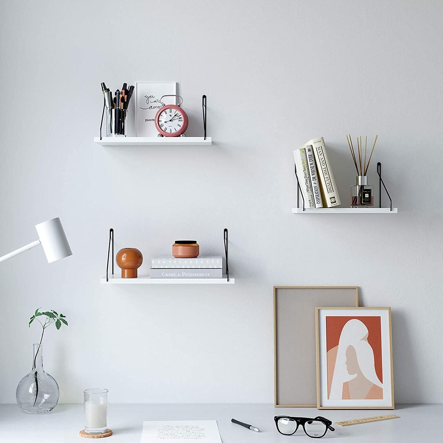 YOYAI 壁掛け棚 ウォールシェルフ 飾り棚 木製 DIY おしゃれ 壁面収納 穴あけ不要 簡単取り付け (ホワイト, 30cm)