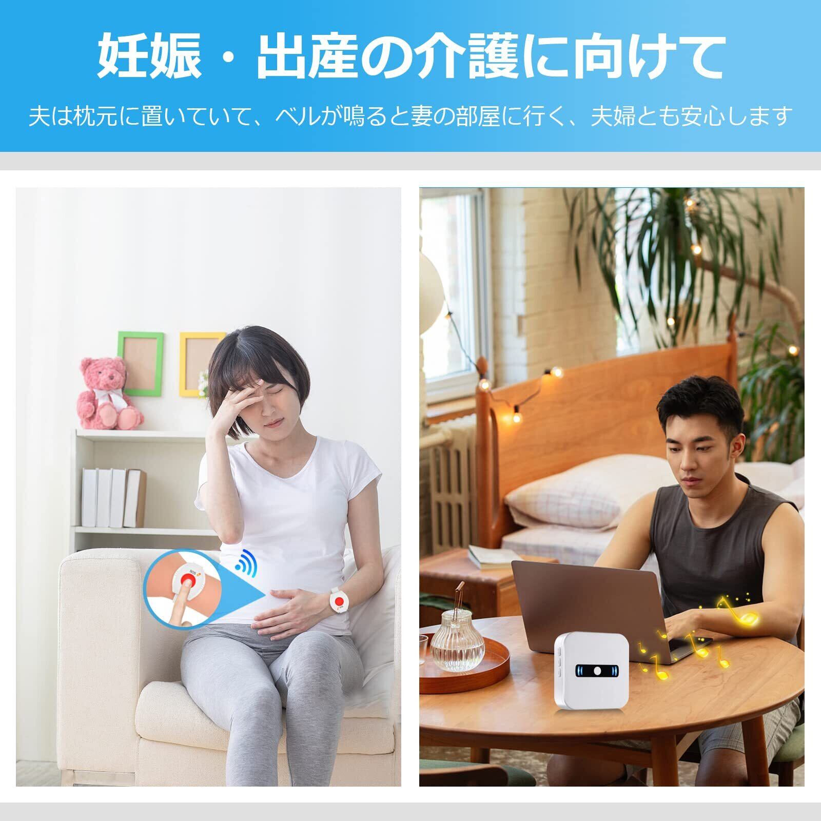【操作が簡単】コールボタンを押すだけで離れた部屋でもチャイムが鳴れば駆けつけられます。ボタンが柔らかくて押しやすいです。高齢者、妊婦、障害者、患者などの生活をサポートする便利な緊急ボタンです