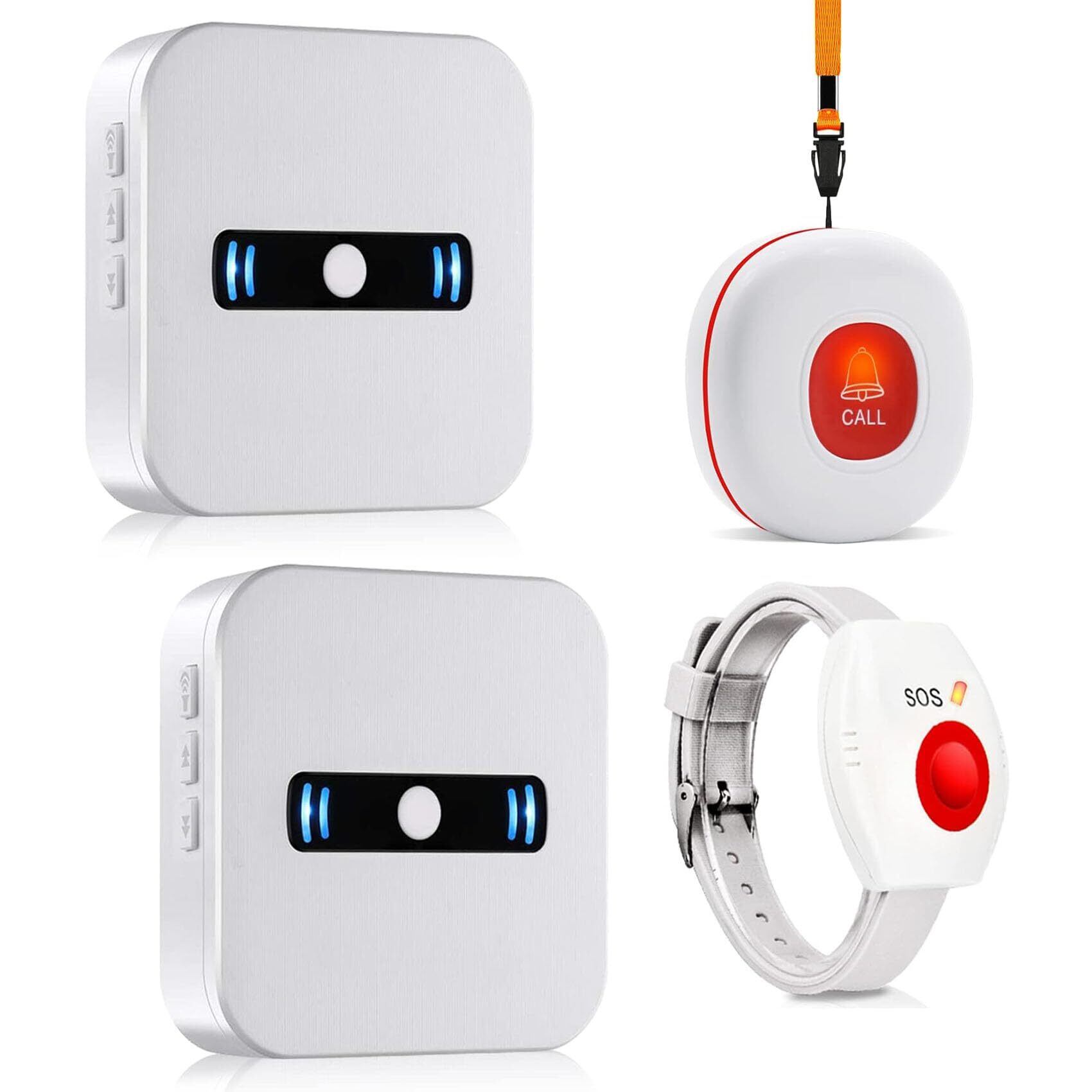 DAYTECH 呼び出しベル 介護 ポケットベル 無線コールボタン 警報 システムにおける 高齢者個人用 電池式受信機2+コールボタン発信機1+腕時計式発信機1 赤色