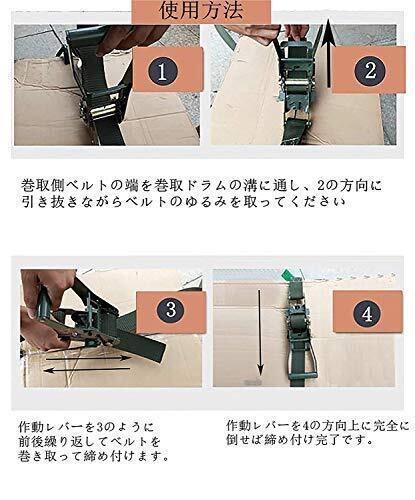 ラチェット機能付きで、しっかりと荷物の締め付けが行えます ポリエステル素材を使用し耐久性は抜群で商品を損なわない。