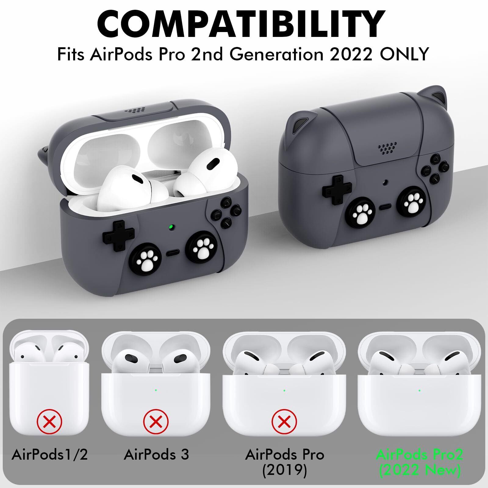 NIUTRENDZ AirPods Pro2 ケース かわいい エアーポッズプロ2 ケース 猫とゲーム機のデザイン AirPods Pro 第2世代 ケースキーチェーン付き (ブラック)