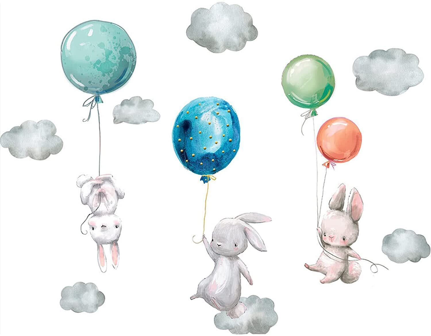 Maydahui ウォールステッカー ウサギ 風船 雲 おしゃれ 壁ステッカー かわいい アート ウォールペーパー ウォールシール 幼稚園 保育園 子供 部屋 部屋飾り 玄関 DIY 剥がせるル シール式 ポスター ステッカー 壁飾り ウォールデコ ウォール 装飾 | yankees