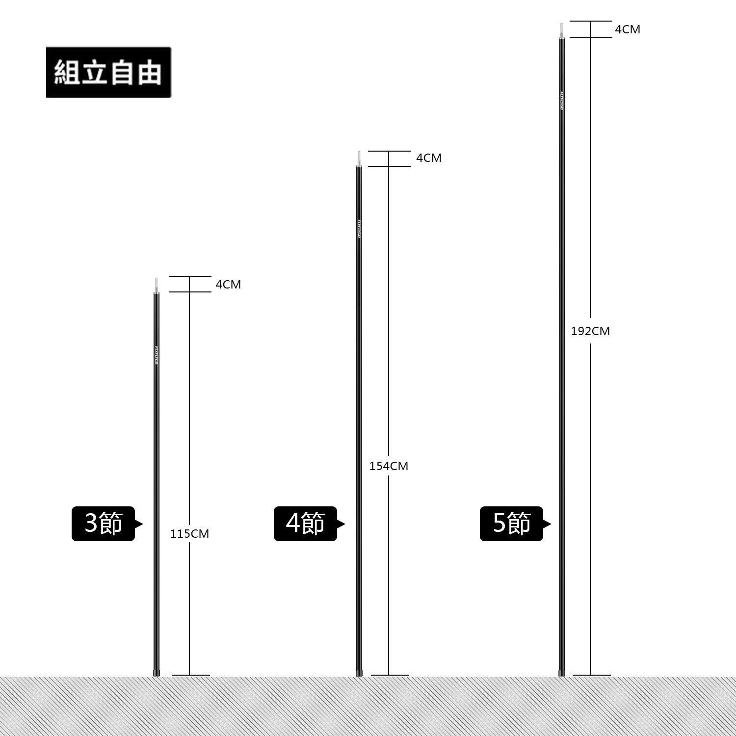 直径は19mm、材質はアルミニウム合金です。サイズ :約(径)19mm×高さ192cm(38.5cm*5節)x1本;2本セット;収納サイズ :44cm*13cm;アルミの厚さ:1.2mm ;重量は約840gです。