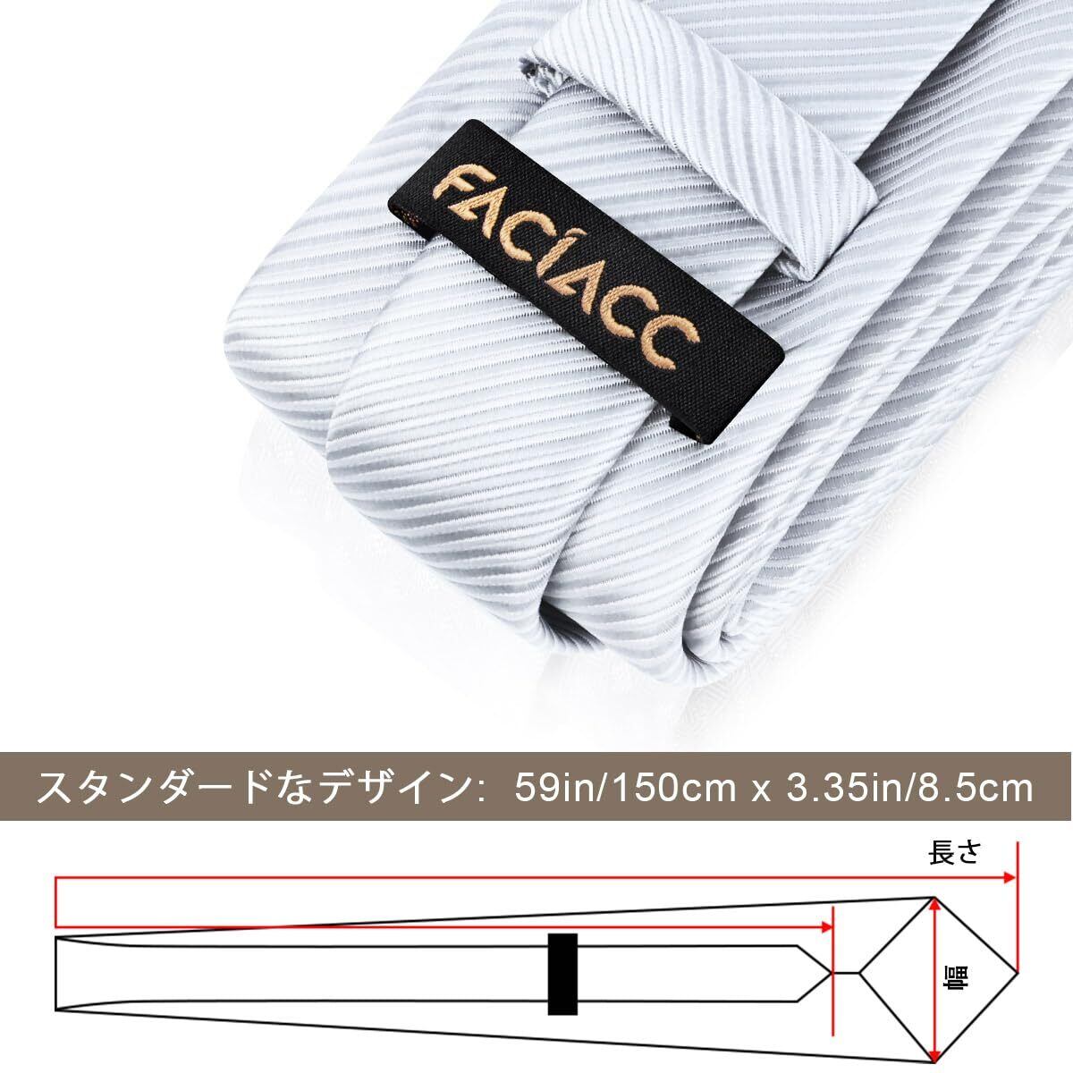 【エレガントなデザイン】ネクタイ本体サイズ: 3.4"× 59"(8.5cm × 150cm)、ハンカチサイズ:12"x 12"(31cm x 31cm)、このFACIACCクラシックなストライプ柄のネクタイはレトロなスタイルとファッションスタイルの完璧な融合です。年齢を問わず、通年お使いいただけます;ご自用はもちろん、絶妙なギフトボックスのパッケージ、新郎と友人とお父さんへの大切な男性への贈り物にも人気のプレゼントです、父の日、クリスマス、バレンタインデー、感謝祭、記念日、誕生日などのプレゼントに最適です。