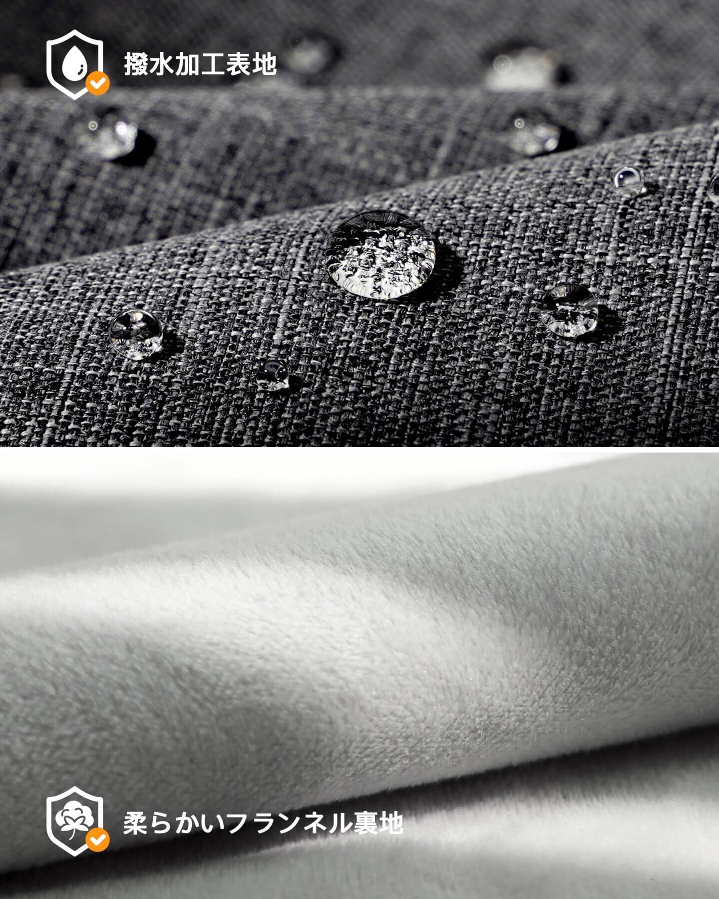 撥水生地:表面に撥水ポリエステルを使用しています。バッグ表面に液体をはねてしまったときは、タオルや布で吸い取るだけで早く乾きます。