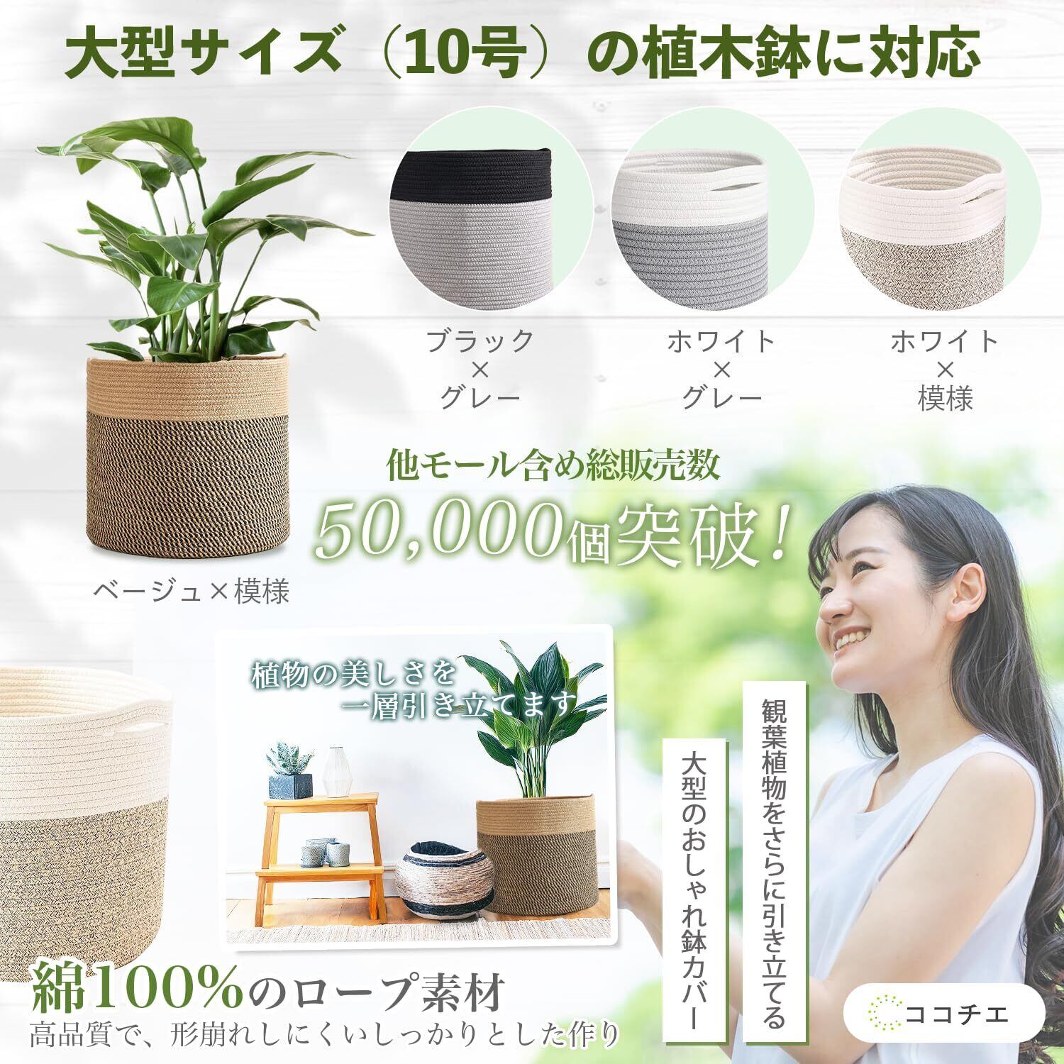 [ココチエ] 鉢カバー 鉢 プランター カバーおしゃれ 10号 バスケット 収納 かご 綿 ロープ インテリア ポット 植木鉢 屋内 ベージュ (ブラック × グレー)
