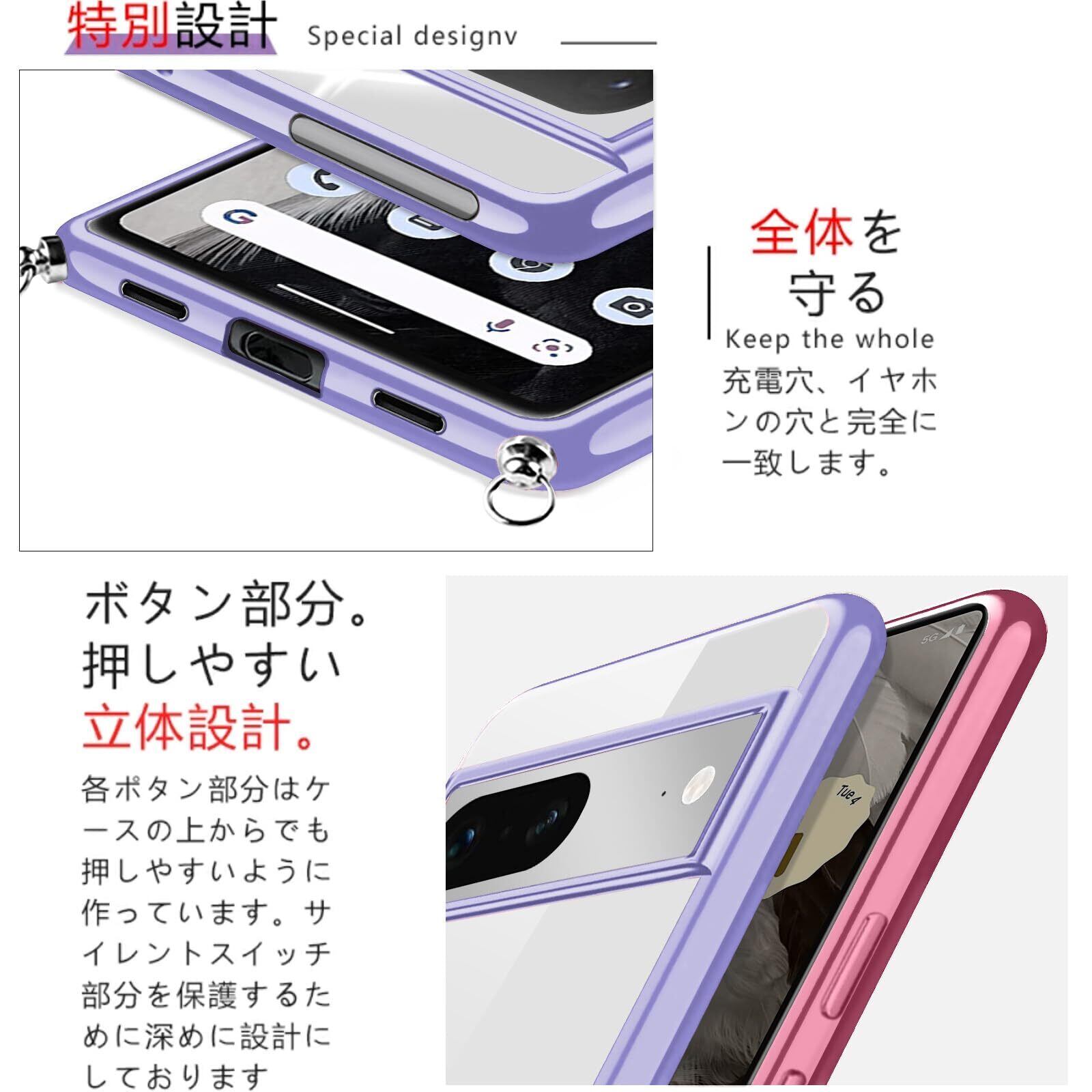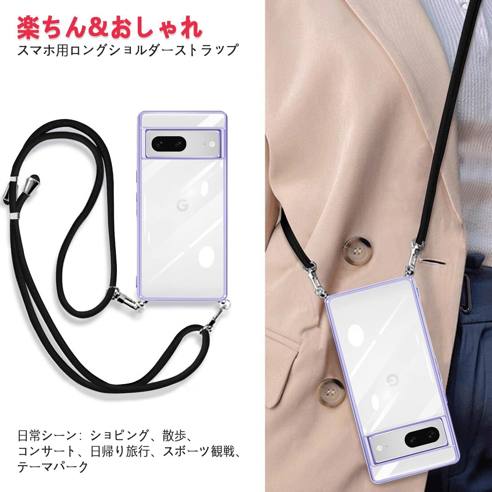 Google Pixel 7 ケース クリア ショルダー TPU ピクセル7 カバー スマホケース 透明 薄型 肩掛け 首掛け 斜めかけケース 耐衝撃 シリコン(ライトパープル)