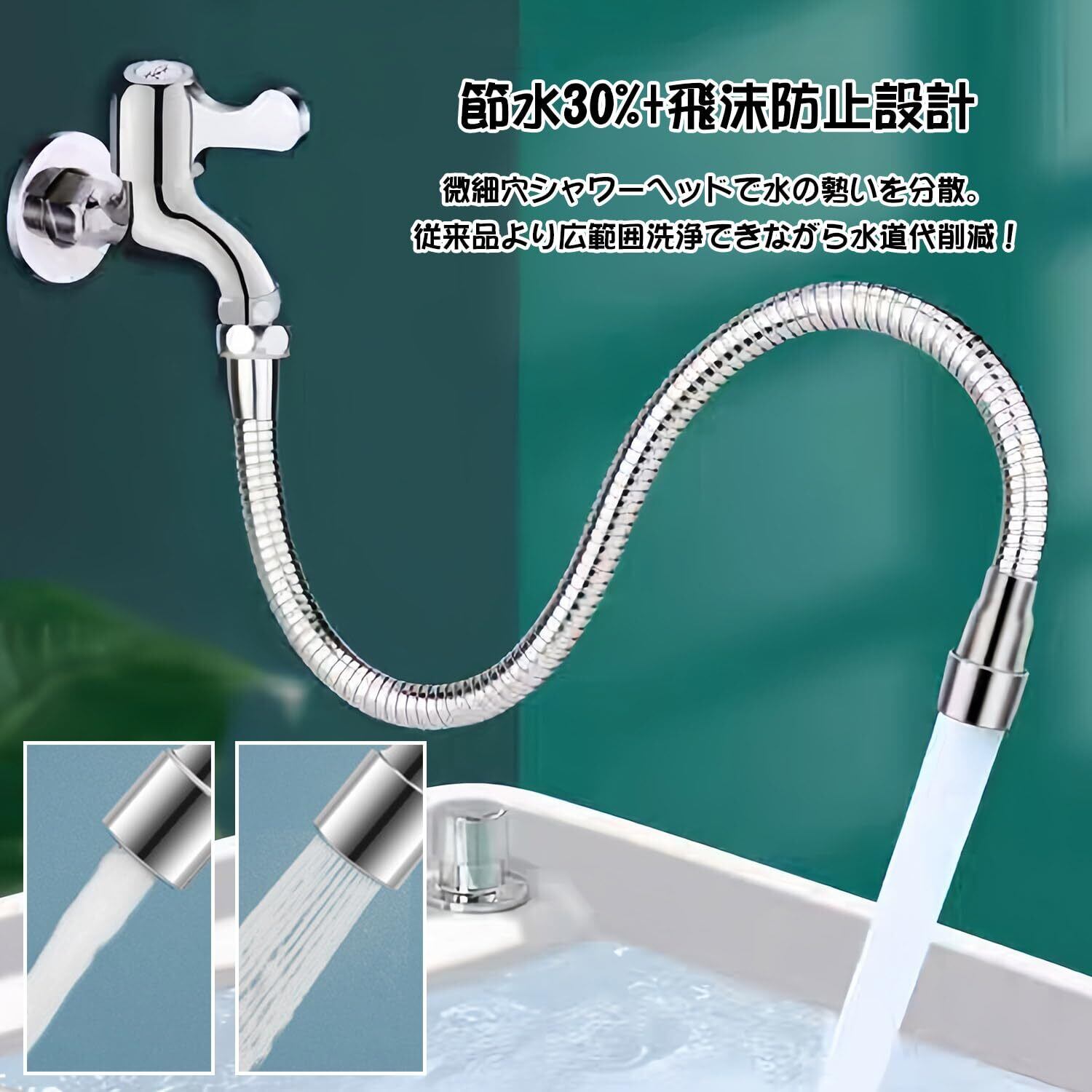 ステンレス製 蛇口延長ホース 20cm 2段水流切替(柔泡/加圧シャワー) キッチン蛇口シャワー 360度回転 漏れ防止 キッチン/洗面台対応 万能アダプター付き 15-26mm管径対応