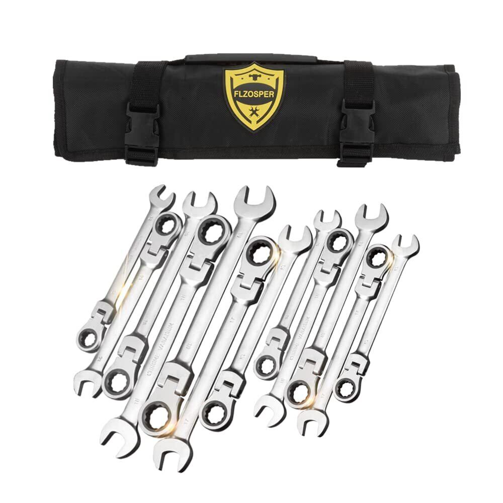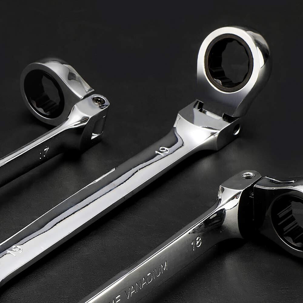 フレックスラチェットレンチセット整備工具セット 8~19mm 12本組 作業 常備 車 バイク 各種メンテナンス対応 家具組み立て 鏡面仕上げ コンビネーションレンチ 収納ケース付き 角度調整可能 | yankees