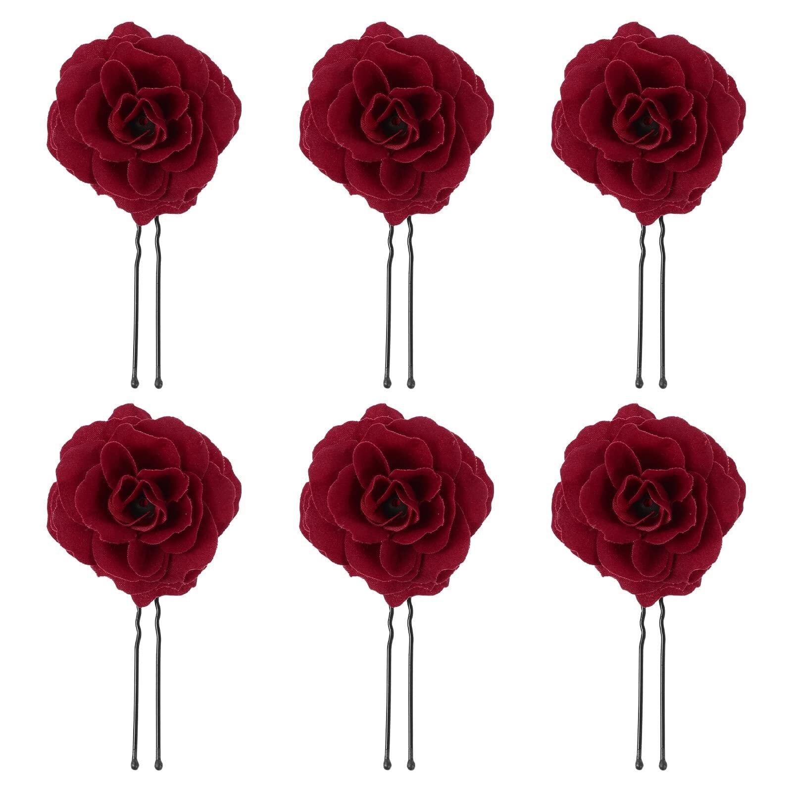 Frcolor ヘアピン Uピン 6本セット バラ 玉付き 花髪飾り ウェディング 結婚式 ヘアアクセサリー ブライダル ヘッドドレス(赤)