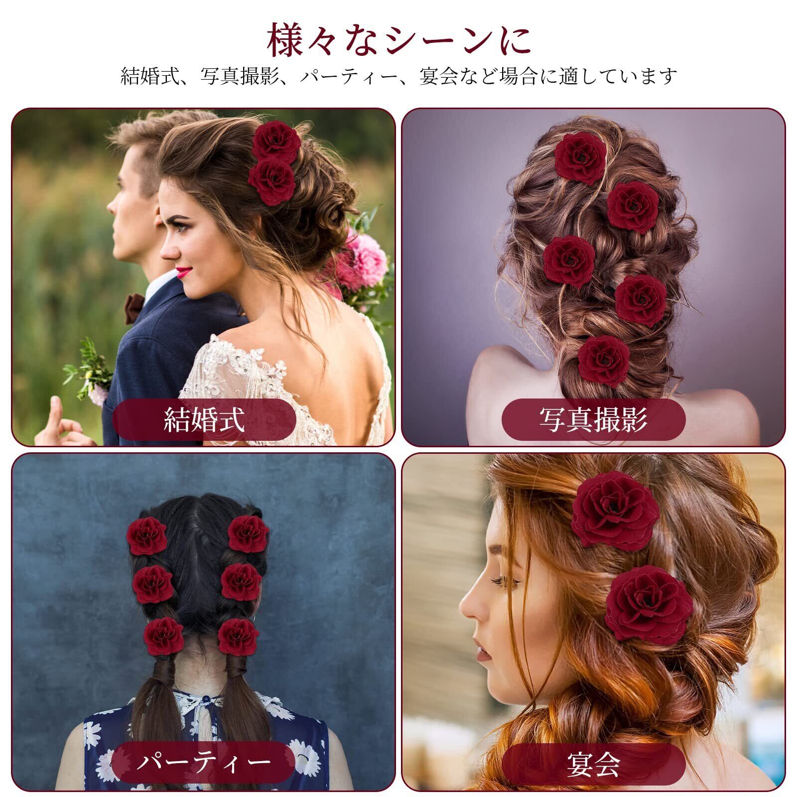 【おしゃれなローズ髪飾り】バラ模様でデザイン、生き生きとしたバラの形を採用しており、お団子やハーフアップなどのヘアスタイルを作るのに最適、美しいヘアアレンジをお楽しみいただけます。