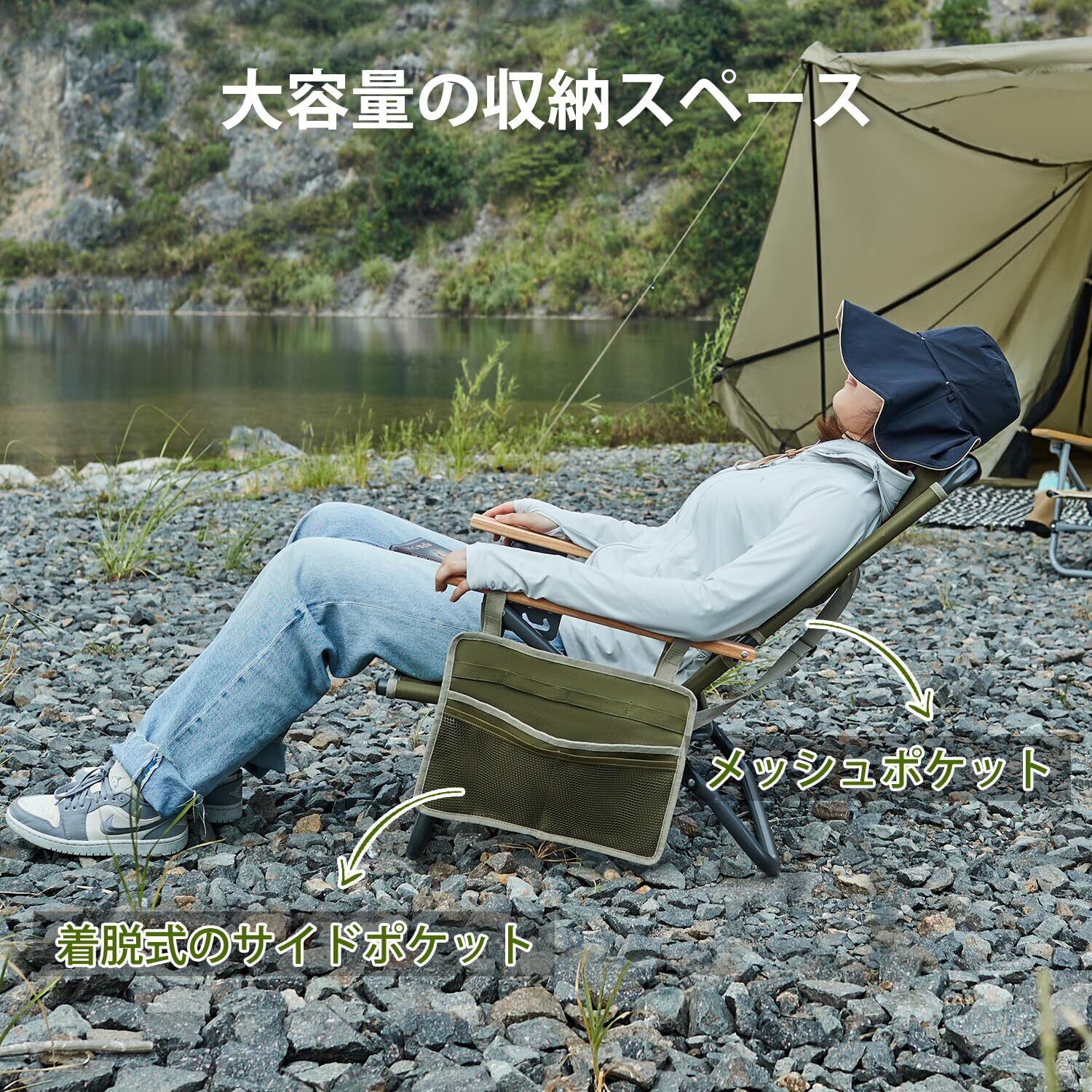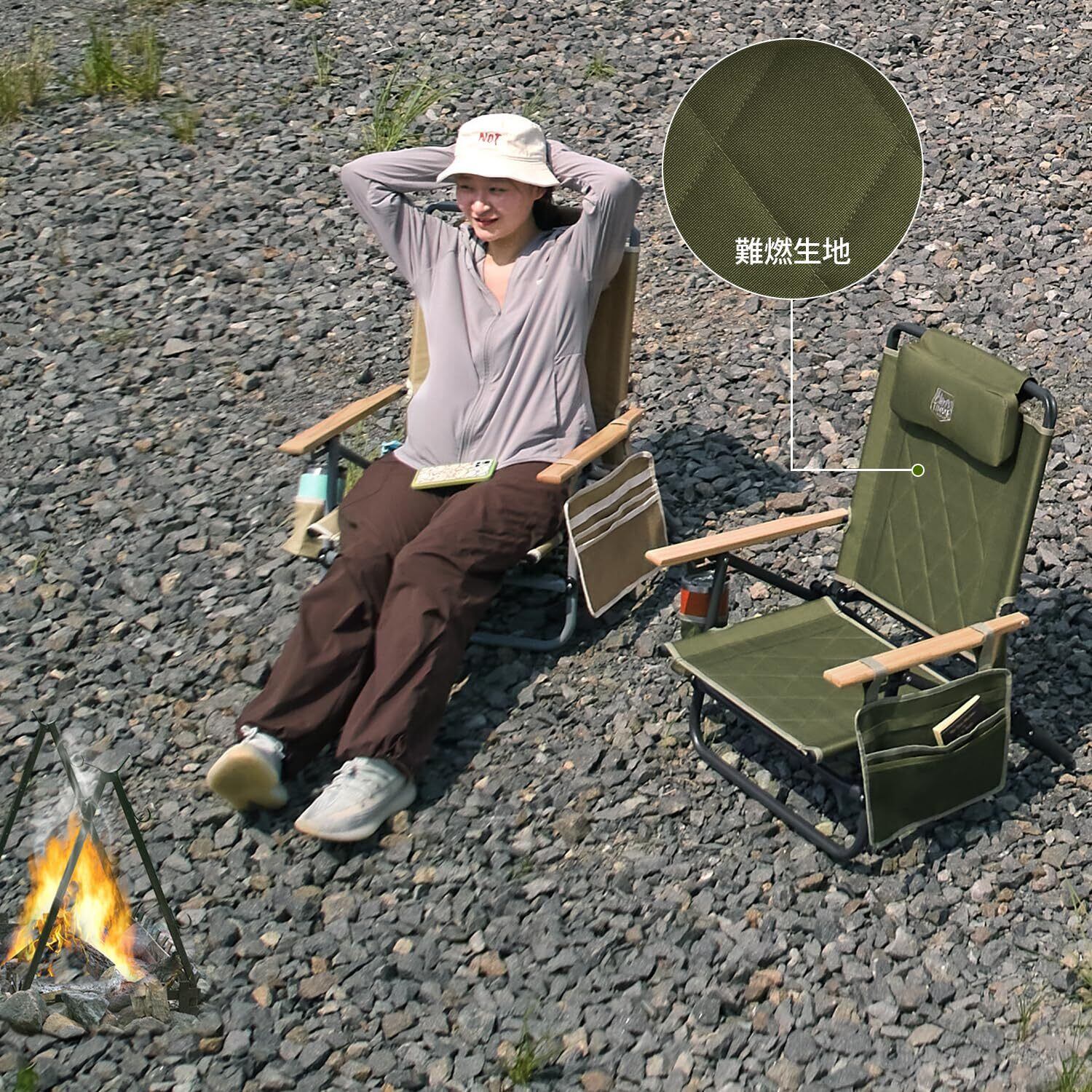 TIMBER RIDGE アウトドアチェア 折りたたみ椅子 3段リクライニング 焚き火チェア 難燃 ローチェア 携帯椅子 耐荷重150kg 木制肘掛 キャンプ 屋外 バーベキュー