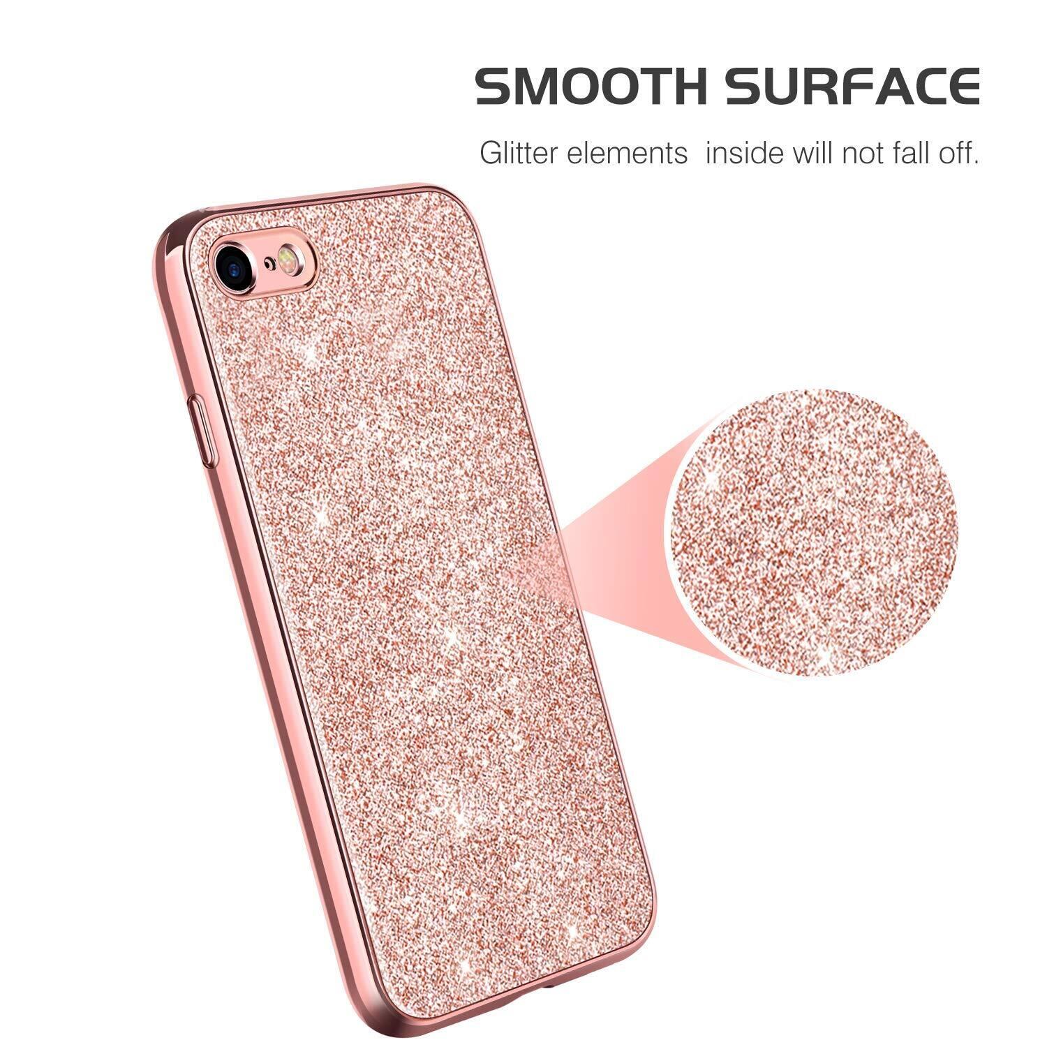 GUAGUA iPhone se ケース se第3世代 iPhone 8・ se2・7 ケース 耐衝撃 アイフォン SE3 SE2 8 7 カバー tpu キラキラ 薄型 可愛い おしゃれ 人気 ワイヤレス充電対応 ストラップホール付き(ローズゴールド)