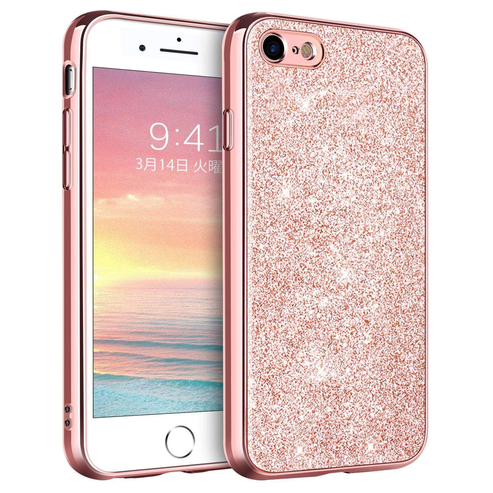 GUAGUA iPhone se ケース se第3世代 iPhone 8・ se2・7 ケース 耐衝撃 アイフォン SE3 SE2 8 7 カバー tpu キラキラ 薄型 可愛い おしゃれ 人気 ワイヤレス充電対応 ストラップホール付き(ローズゴールド) | yankees