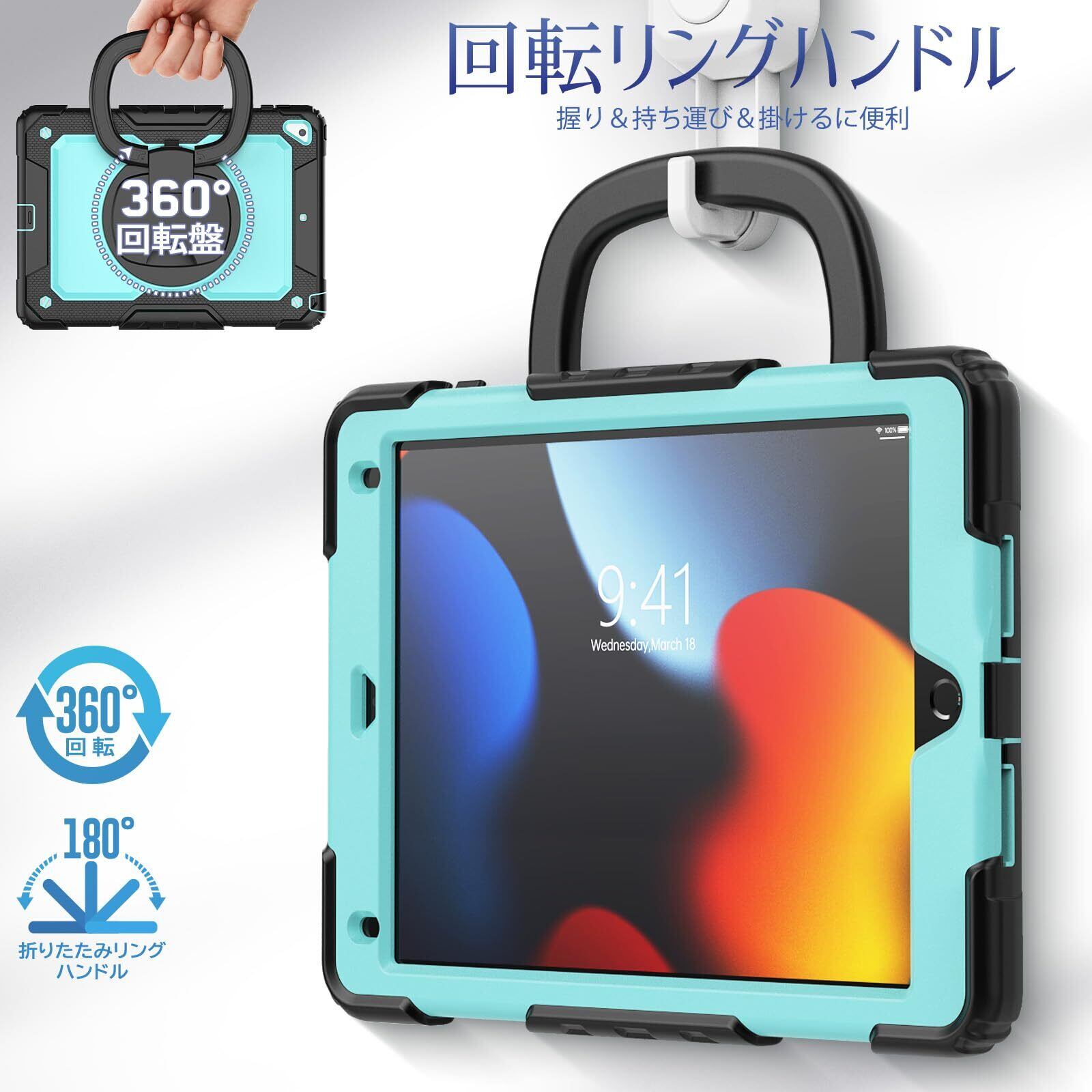 【360度回転リングハンドル】:どの場所、状況でも使いやすいリングハンドルは遊び、旅行中などに両手が自由になります。子供にもiPad 第6世代/第5世代、iPad Air2、iPad Pro 9.7が気楽に楽しめます。