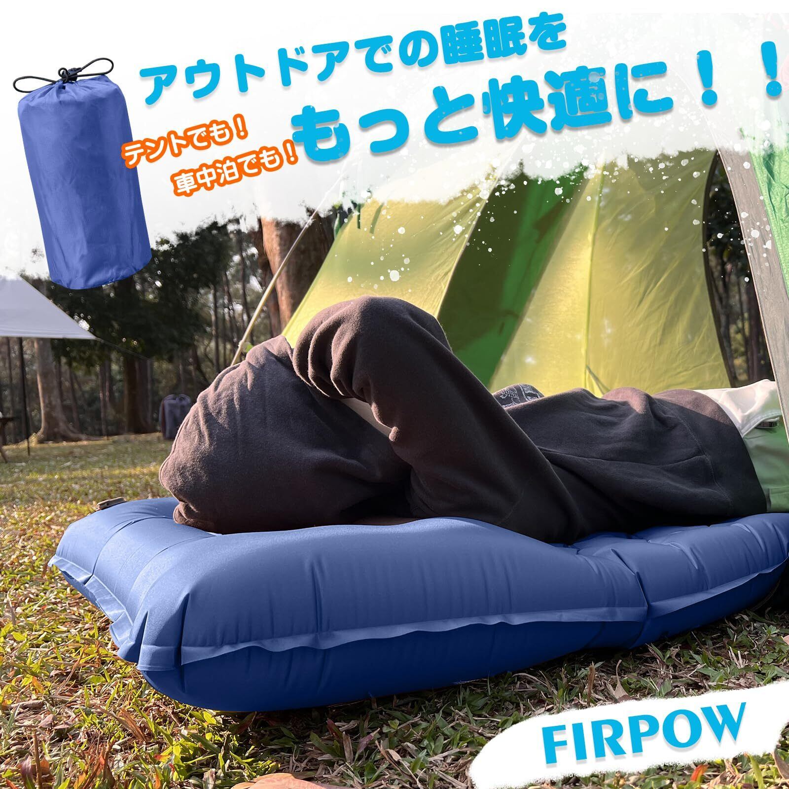 FIRPOW エアーマット キャンプ マット 【10cm厚さ・寝心地良い】枕付き エアマット コンパクト 軽量 防水防潮 車中泊 マット キャンプマット アウトドアマット キャンプ用 取扱説明書・収納袋付 折り畳み式 持ち運び便利