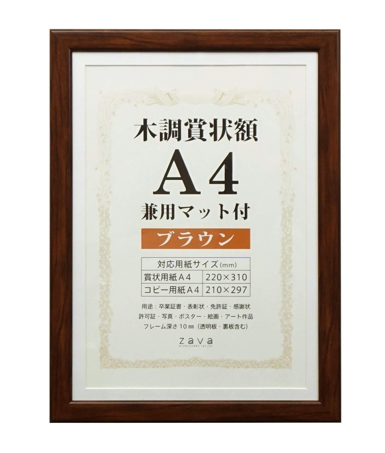 万丈 VANJOH 木調賞状額 A4 兼用マット付き ブラウン 105871 WSJ-A4-BR