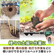 お持ちの電動工具にセットしスイッチを押すだけ!初心者でも簡単に土が掘れる園芸用アースドリルです。