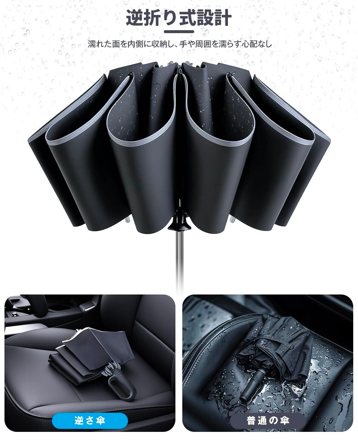 折りたたみ傘 ワンタッチ自動開閉 【10本骨・高密度310T生地・逆戻り防止安全設計】 折り畳み傘 大きいサイズ 逆折り畳み傘 風に強い テフロン加工 耐風撥水 丈夫耐久 折りたたみ日傘 遮光遮熱 UVカット 晴雨兼用傘 梅雨対策 台風対応 豪雨対応 メンズ レディース リングハンドル折りたたみ逆さ傘 収納ポーチ付き