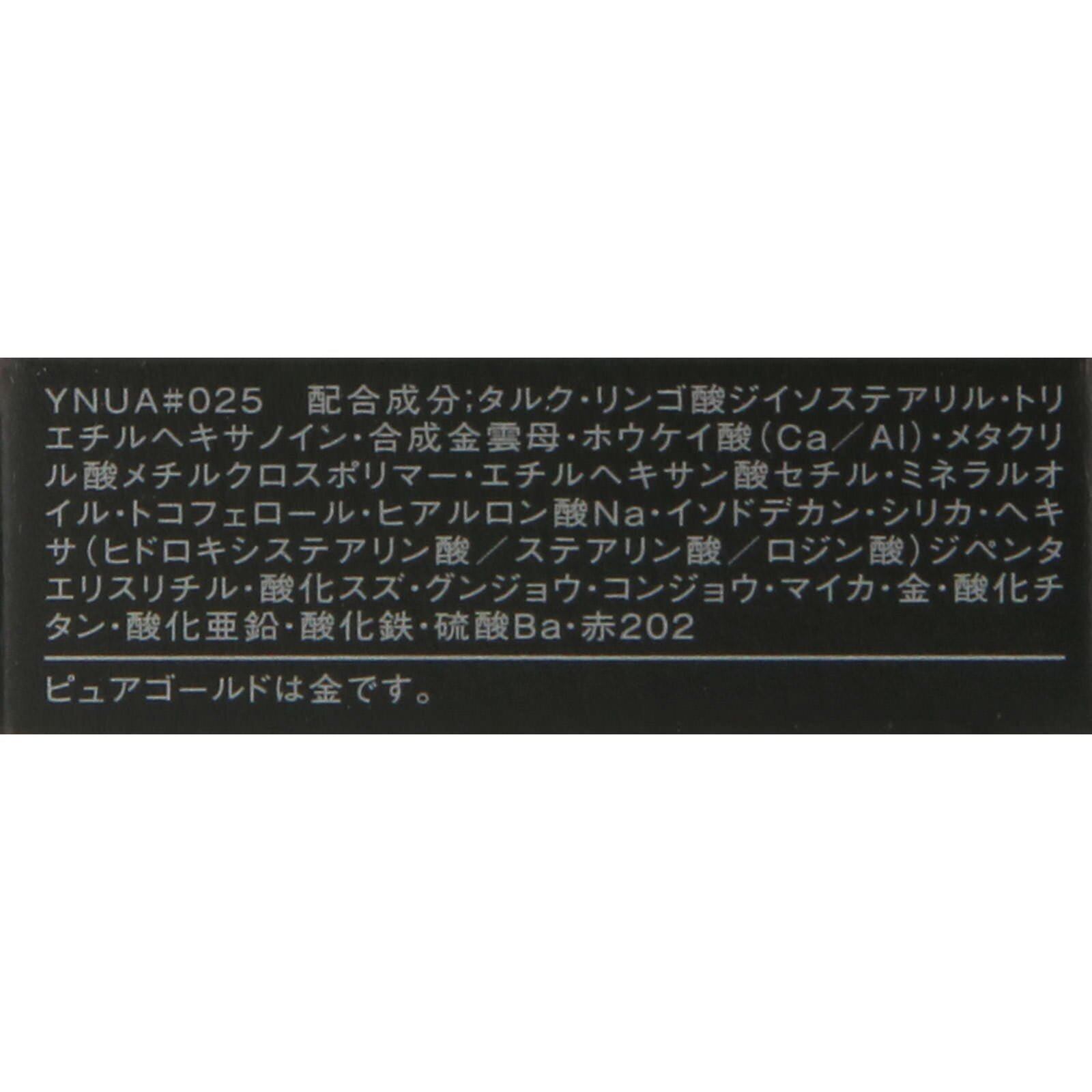 <配合成分> タルク・リンゴ酸ジイソステアリル・トリエチルヘキサノイン・合成金雲母・ホウケイ酸(Ca/Al)・メタクリル酸メチルクロスポリマー・エチルヘキサン酸セチル・ミネラルオイル・トコフェロール・ヒアルロン酸Na・イソドデカン・シリカ・ヘキサ(ヒドロキシステアリン酸/ステアリン酸/ロジン酸)ジペンタエリスリチル・酸化スズ・グンジョウ・コンジョウ・マイカ・金・酸化チタン・酸化亜鉛・酸化鉄・硫酸Ba・赤202