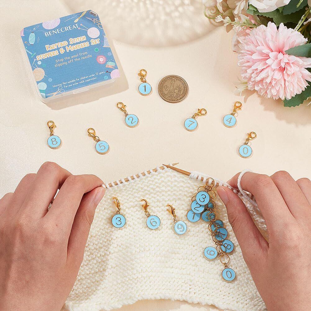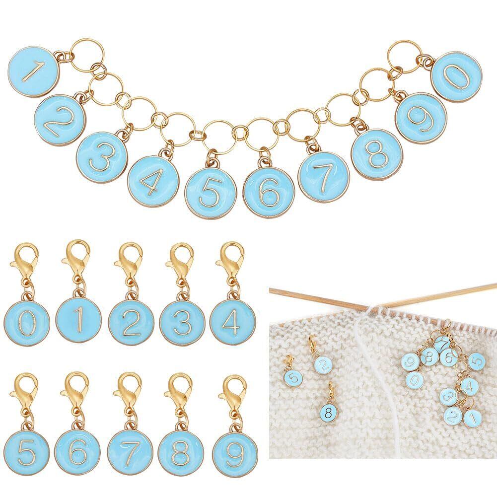 BENECREAT 11点 段数マーカー 数字ステッチマーカー 0~9 青い 合金&エナメル かぎ針編み用ローカウンター 段かぞえマーカーセット 編み物マーカー 段数リング 編み物ツール 収納ケース付き 携帯便利 | yankees