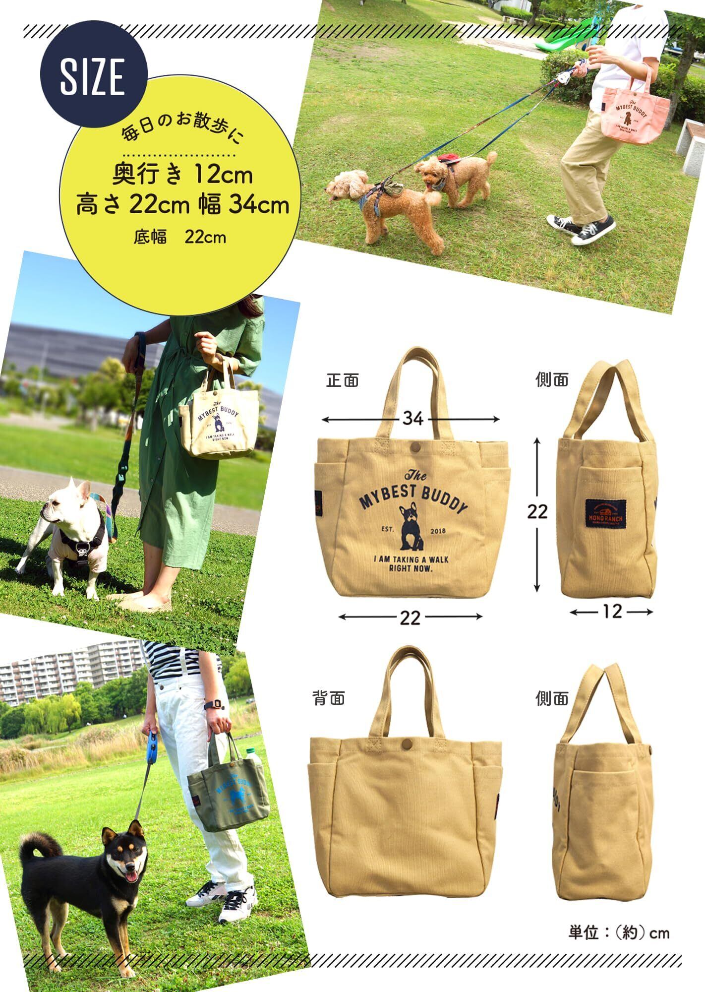 [MONO RANCH] キャンバストート お散歩バッグ【可愛い 犬柄プリント】 綿100%《軽量/ペットボトルホルダー/ポケット/収納》手提げ 手持ち コットン 多機能 犬 犬用 ペット トートバッグ キャンバストート お散歩バック アウトドア マナーバッグ | yankees