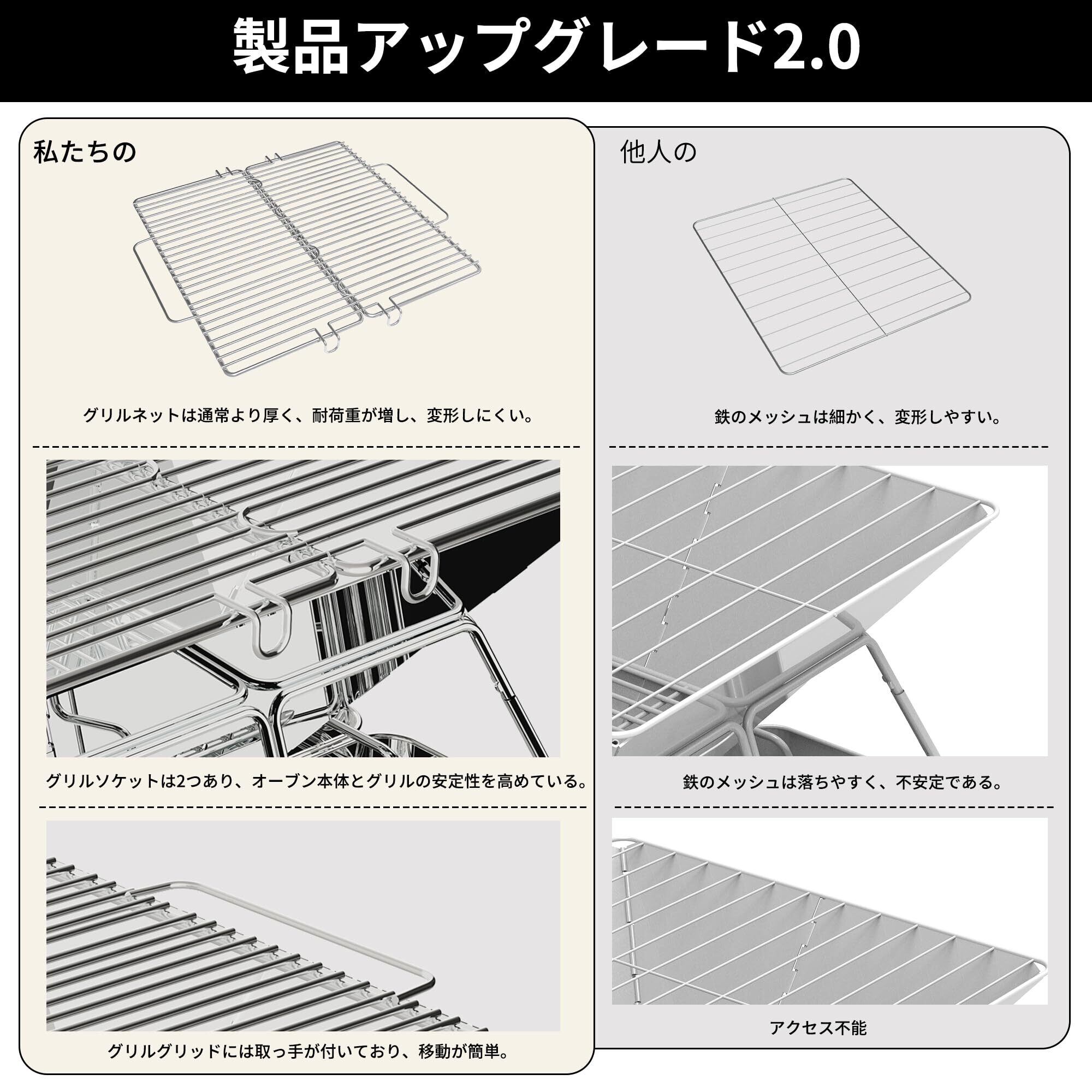 【仕様】重量:3.1 kg、使用サイズ:約38.5 x 39.5 x 21.5 cm、折りたたみ収納寸法(約):38.5×19.8×6 cm、304ステンレス鋼 焼き網:30×30 cm