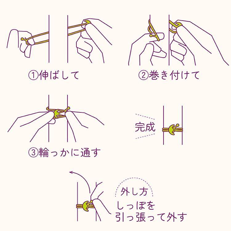 輪ゴムを巻きつけて、ひっかけるだけでワンタッチ束ね ( タバネ )!