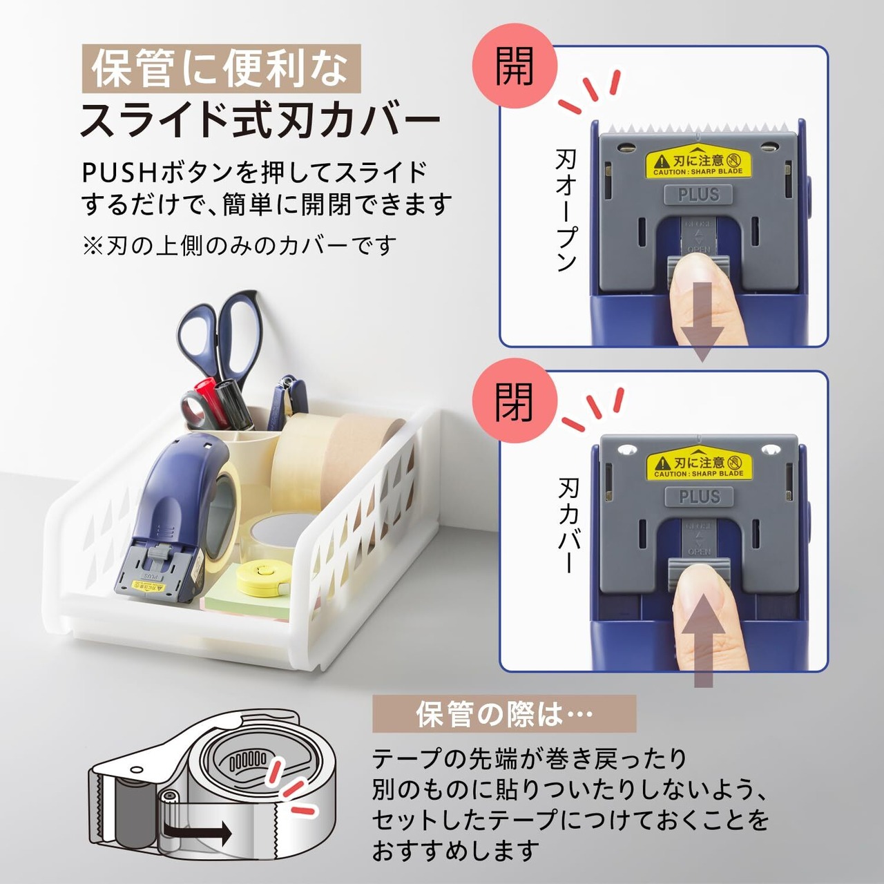 4.簡単に開閉でき、保管に便利な「スライド式刃カバー」
