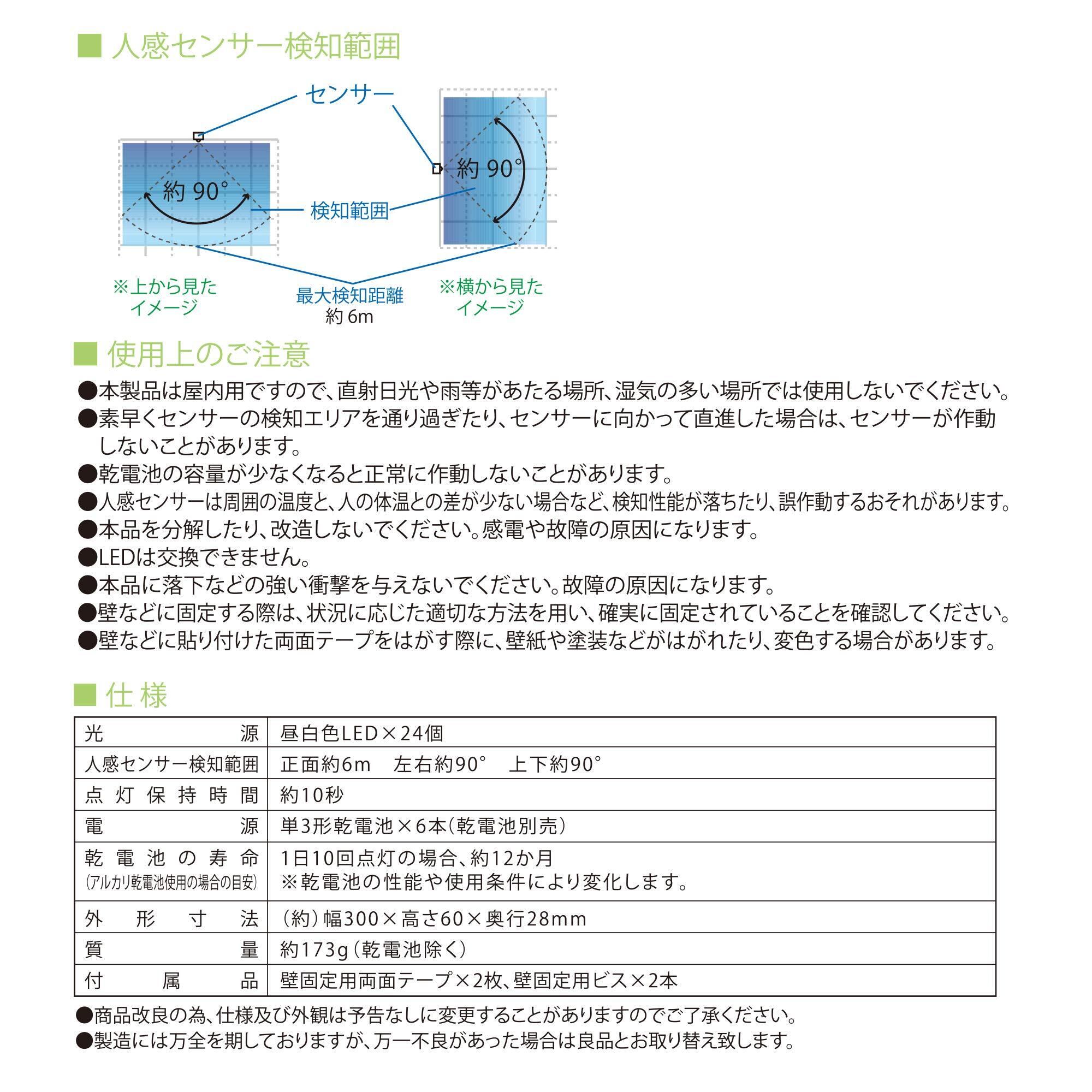 ※ 人感センサーは周囲の温度と、人の体温との差が少ない場合など、検知性能が落ちたり、誤作動するおそれがあります。