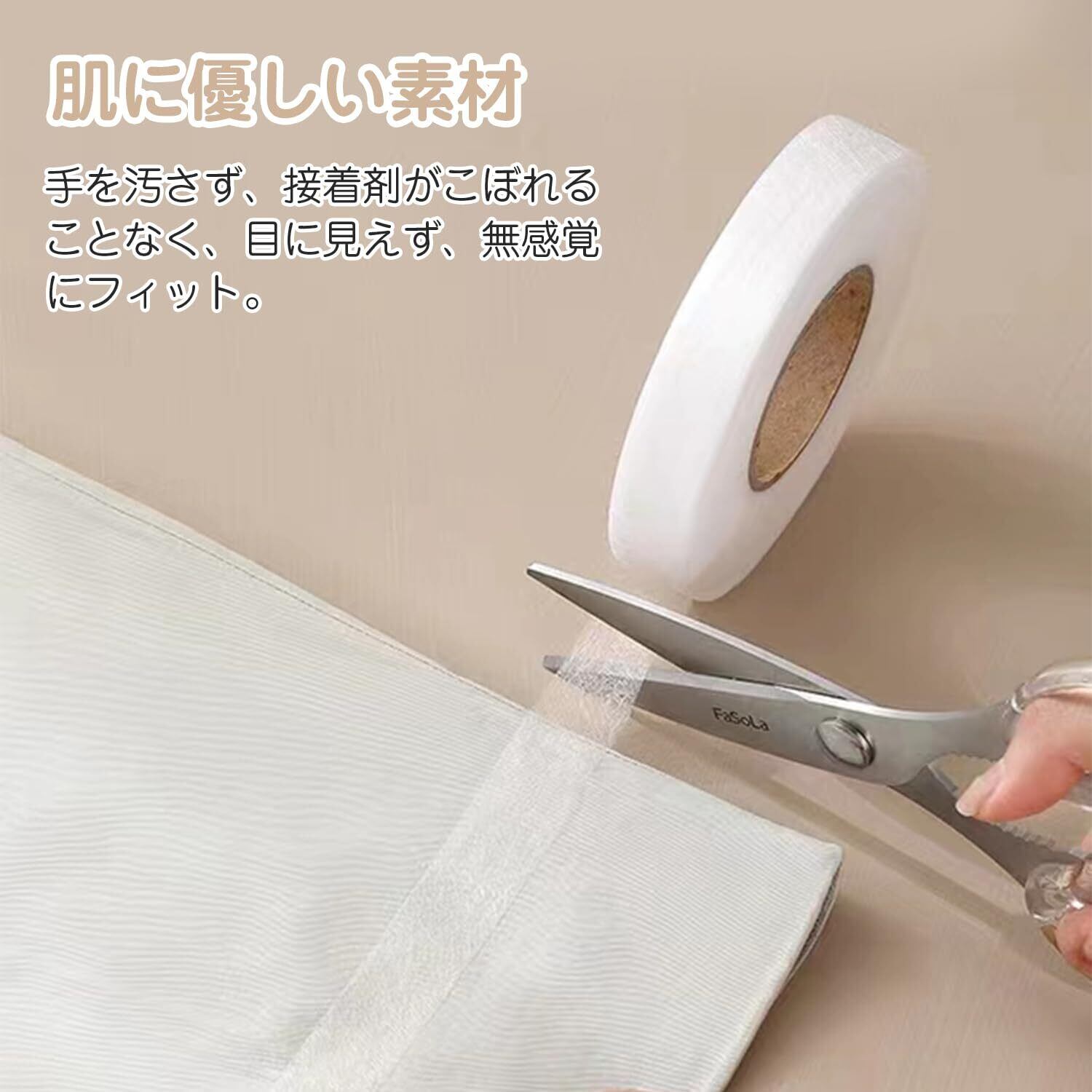 【製品の特徴】糸も針も不要、縫う手間もなくアイロンで簡単に端が折れます。裁縫が苦手な方、裁縫が面倒な方におすすめです。洗濯機で洗え、ドライクリーニングも可能。 貼り替えるときは、アイロンで温めてからゆっくりはがすと簡単にはがせる。アイロンテープの強度だけが必要な場合は、粘着テープを何重にも重ねて使用することもできます。