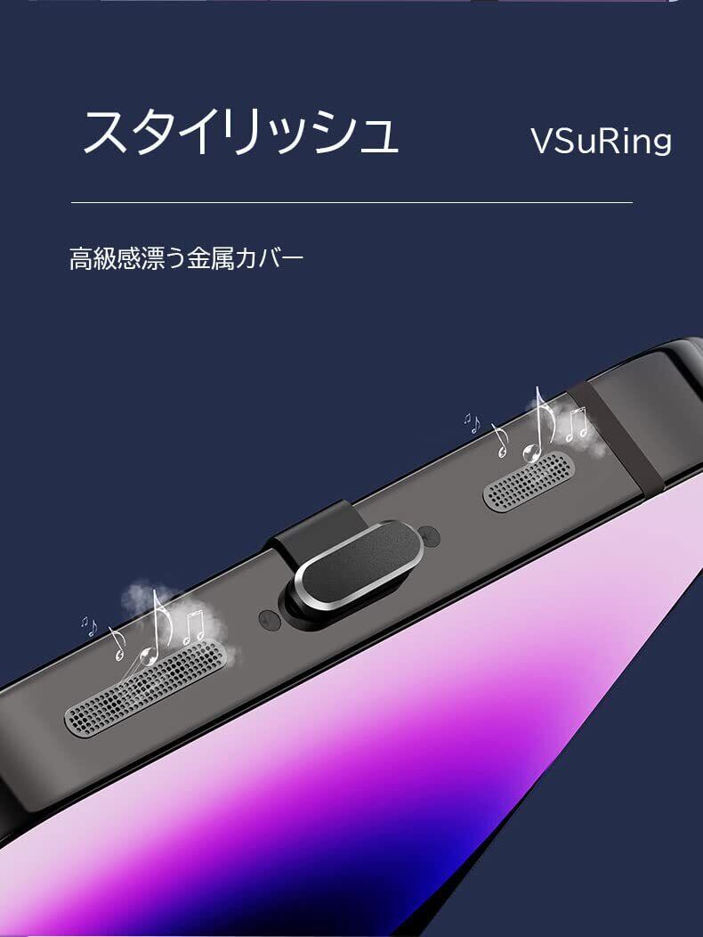 VSuRing Type-C コネクタカバー 紛失防止 シール付 メス用 シリコン アルミニウム合金 耐久 防塵保護カバー・キャップ スタイリッシュ スマートフォン タブレット 携帯 USB タイプC 充電端子用 ダストプラグ(1個) (ブラック)