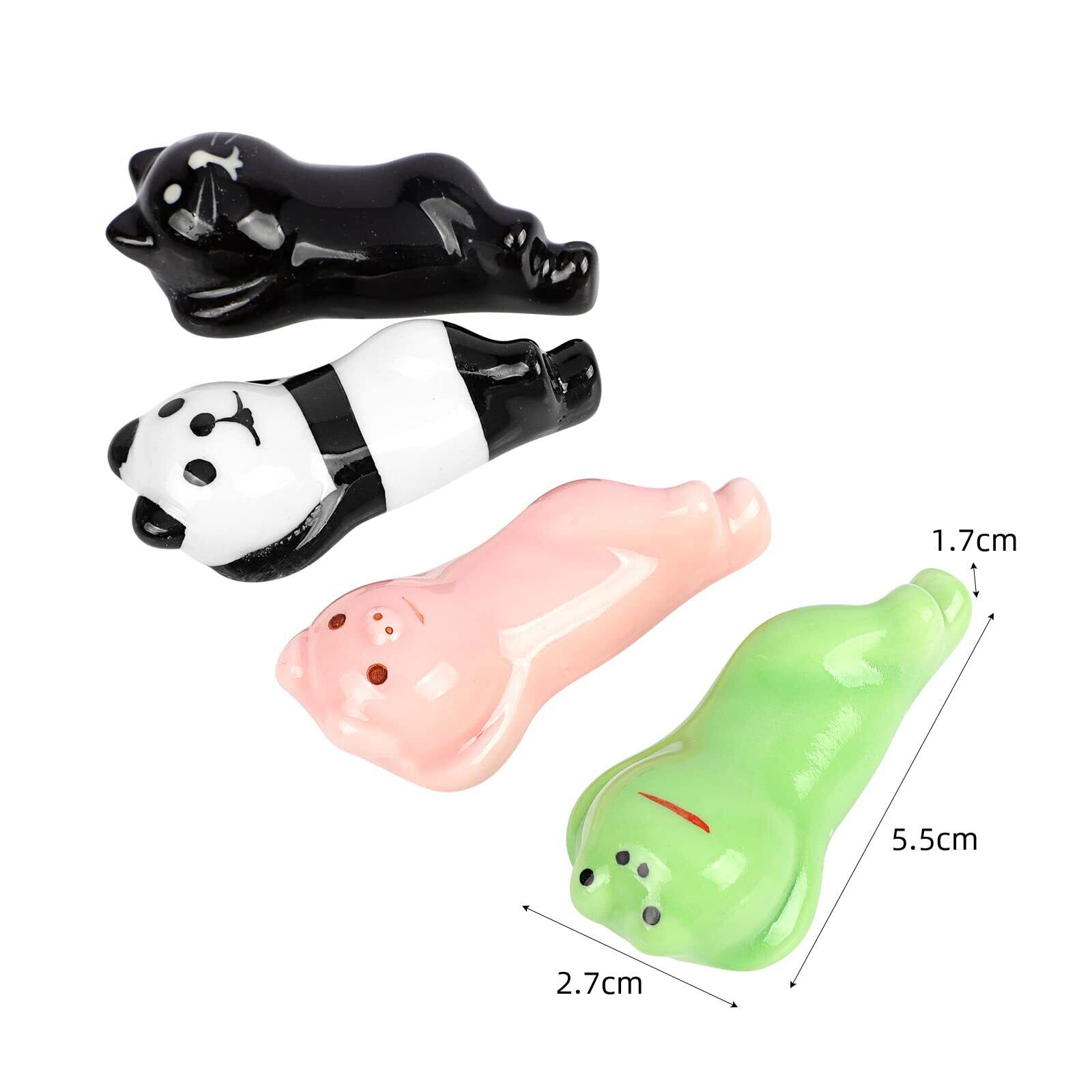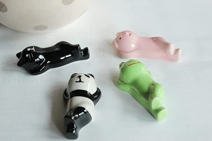 カエル・パンダ・ブタ・ネコ 4個セット、 動物が寝そべっているので、箸置きは置きやすいで、細め太めの箸でも何でも問題なく使える。 裏側に穴も空いてないので洗いやすいです。 さまざまな用途があります。